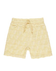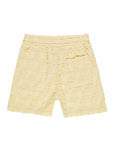 Introducing Rylee and Cru's new kids' board shorts, perfect for riding the waves in style! These light yellow shorts feature a subtle textured wave pattern that adds a touch of fun to any beach day.