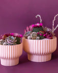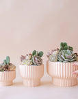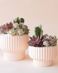 Perfect for succulent + cacti arrangements, a small plant and more, the Presley Pedestal Planter in the shade Ballerina features a fluted pedestal that gives it a stylish texture that's just enough to stand out from the crowd!