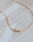 Get ready to add some playful elegance to your jewelry collection with the Three Pearl Linked Necklace! This adorable necklace features three lustrous pearls connected by a delicate gold chain. A must-have accessory for any occasion