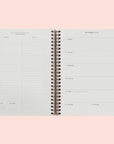 This 17-month version of Rifle's softcover spiral planner features a light blue, textured paper cover with an all-over gold foil design. The weekly view includes a full page for notes and lists on every spread. In addition, there are sections for monthly views, a list of celebrations, and pockets for storage.