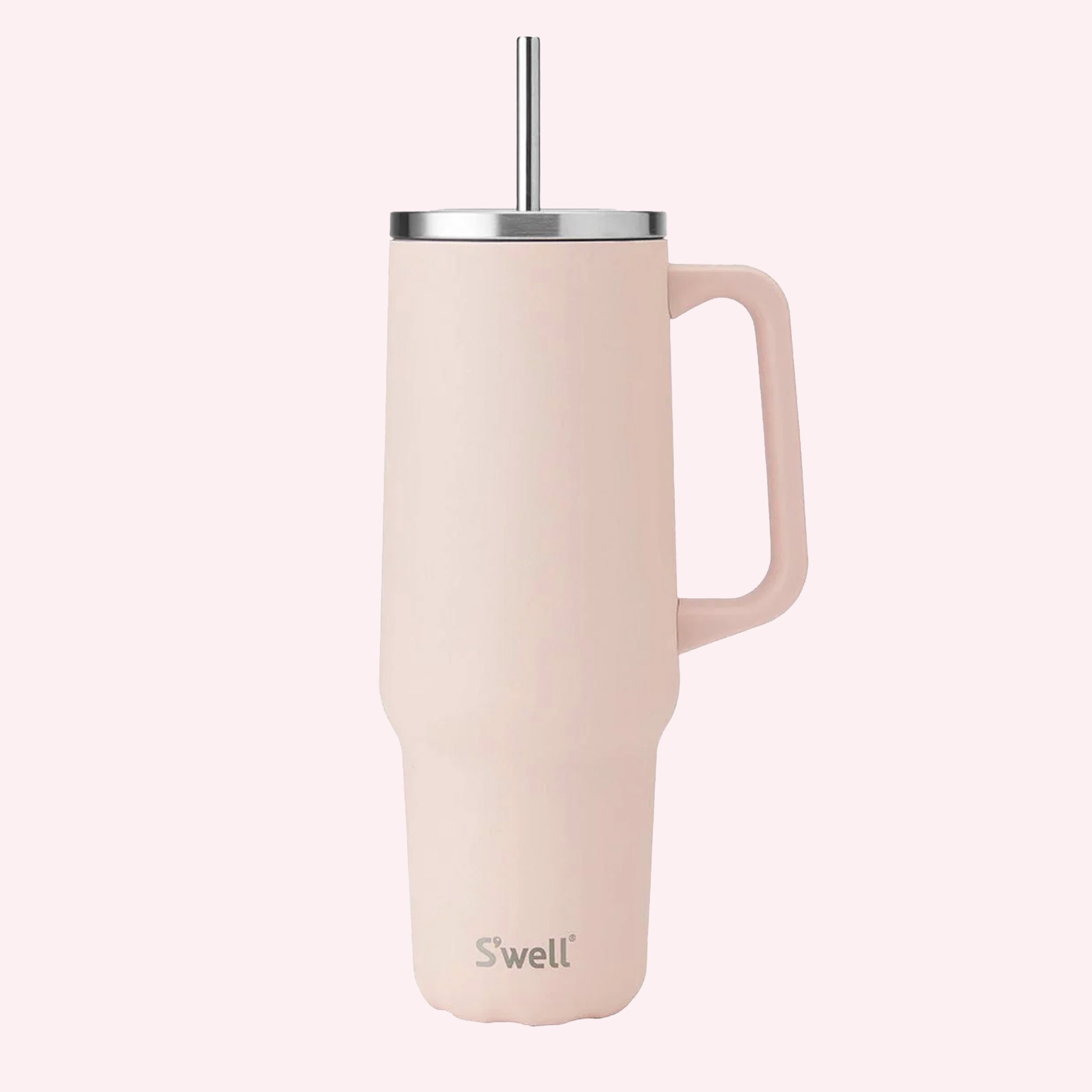 S'well's 40oz Tumbler XL in the shade Pink Himalayan Salt is ideal for staying hydrated throughout the day with iced tea, flavored water, and more. A stainless steel lid and built-in straw create a splash-proof experience that's great for at-home or on-the-go drinking.