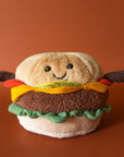 The star of any barbecue bash, Jellycat's Amuseable Burger is dressed to impress! From top to bottom, this burger's rocking a brilliant two-tone golden bun, all the colorful fixings and oh yes, and the chunkiest fuzzy burger patty!