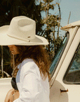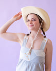 The Austin Straw Cowboy hat is an ultra-breathable, lightweight hat with Western style. It’s crafted sun-protective artisanal straw in a medium structured weave that retains its shape. The brim features a classic side roll topped with a cotton drawcord so you can wear it on your neck or secure your fit.