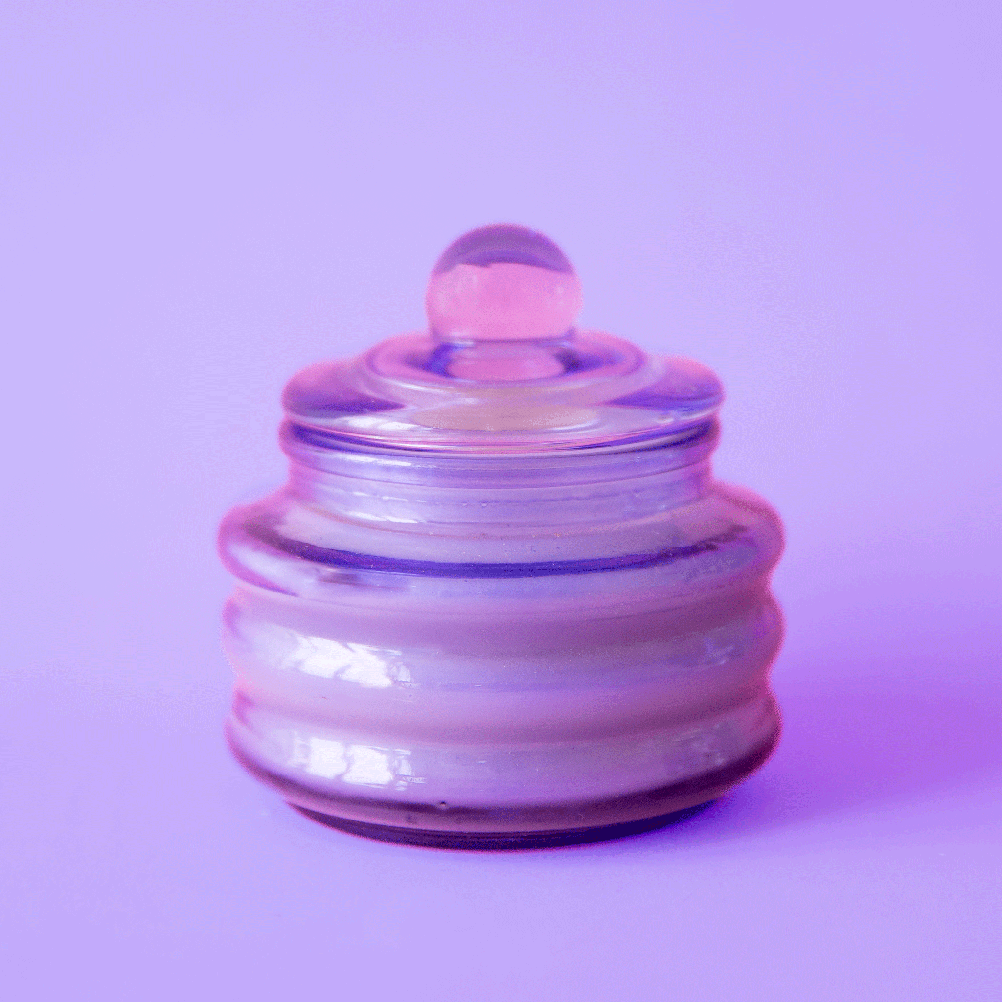 A delightful Lavender scent in a giftable mini purple, glass vessel. Set them on a vanity and repurpose as a jewelry box once you burn through the scent.
