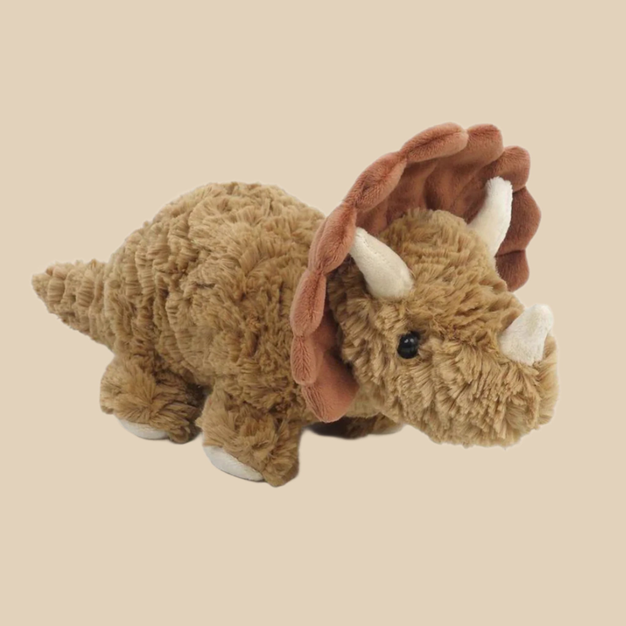 He's dino-mite! Mon Ami Dinosaur Plush Toy is covered in a super soft textured faux fur that babies and infants love to touch. Although triceratops has a reputation for being tough, this dinosaur stuffed animal is a total softie with his squeezable horns and huggable body. Durable and thoughtfully detailed, this dinosaur plush toy is the perfect gift for any curious, action-loving kid. Bring prehistoric style to the playroom with an always-up-for-anything dinosaur stuffed animal.