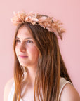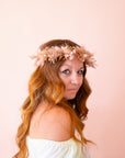 Unleash your inner flower child with our Flower Crown in the stunning Twilight hue. Crafted with beautiful dusty pink and muted mauve dried florals, this accessory is perfect for adding a touch of whimsy to any outfit, whether it's for everyday wear or a special costume. It's the perfect piece to complete your look this season.