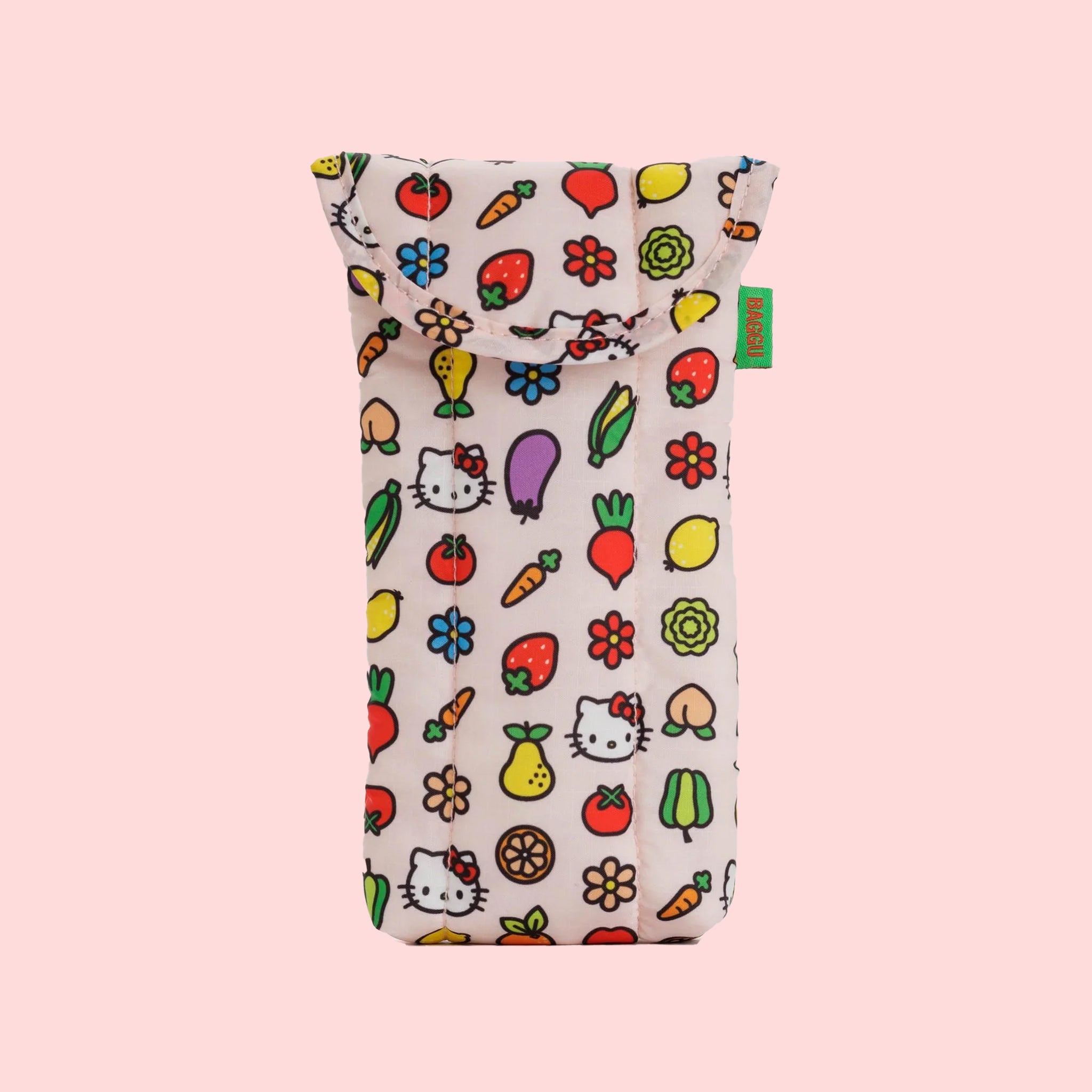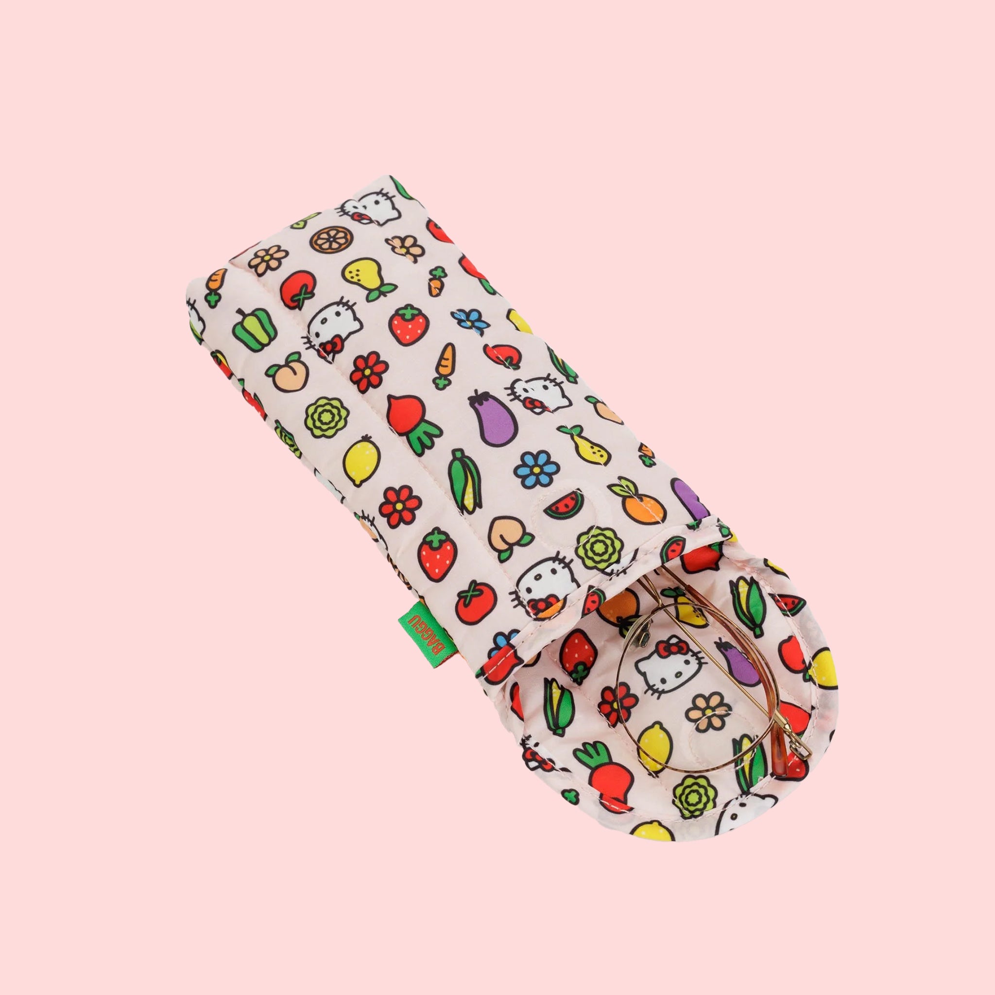 Baggu's Puffy Glasses Sleeve in the shade Hello Kitty Icons cushions your glasses like a protective cloud, and makes them easy to find in your bag.