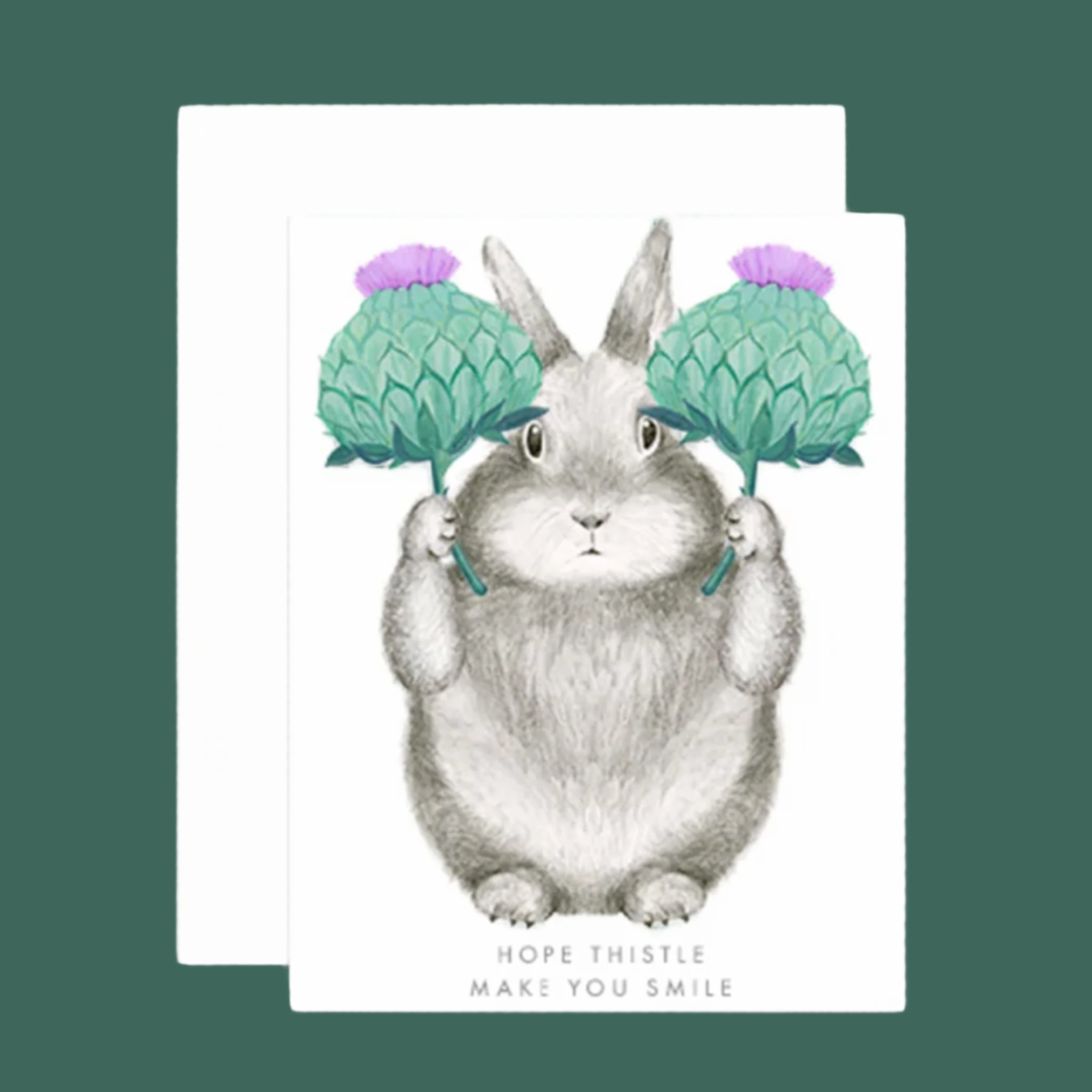 Even the prickliest of the bunch can't help but smile at this adorable hand illustrated card. Blank inside for your personal message, this punny bunny card is perfect for any occasion.