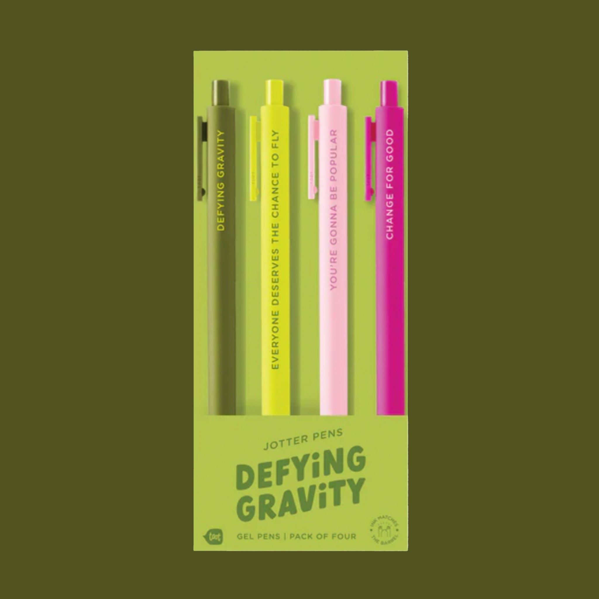 Transform your writing with the Jotter Pens in the Defying Gravity theme, inspired by the hit Broadway musical Wicked. Immerse yourself in the power and magic of the show as you take notes or write out your thoughts. Elevate your writing game with this unique and enchanting pen set.