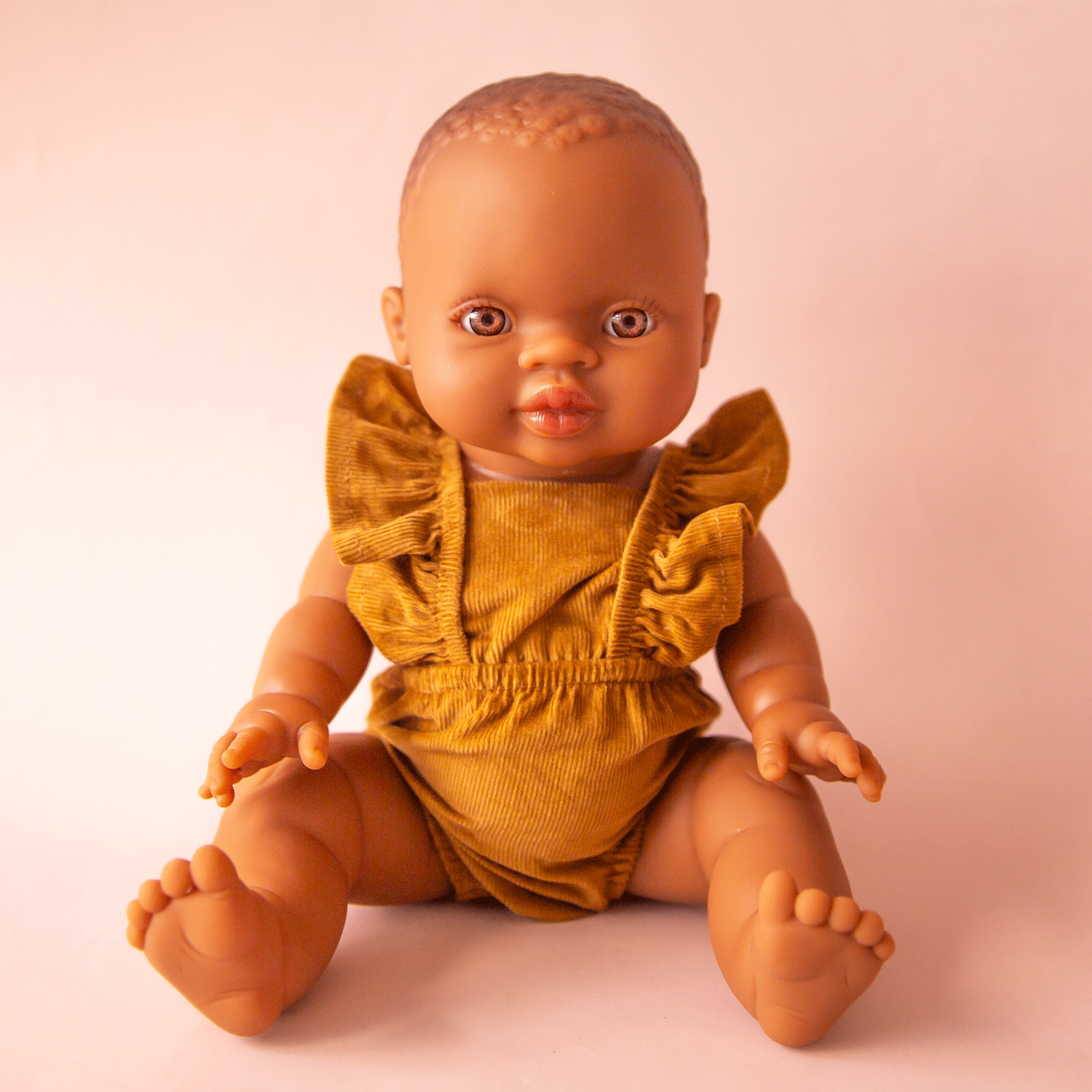 Your kiddo's new baby doll bestie! These Minikane Dolls are made from eco-friendly and non toxic vinyl. They are subtly scented with a vanilla scent and are small enough for your little one to hold. Doll clothing can be purchased separately.