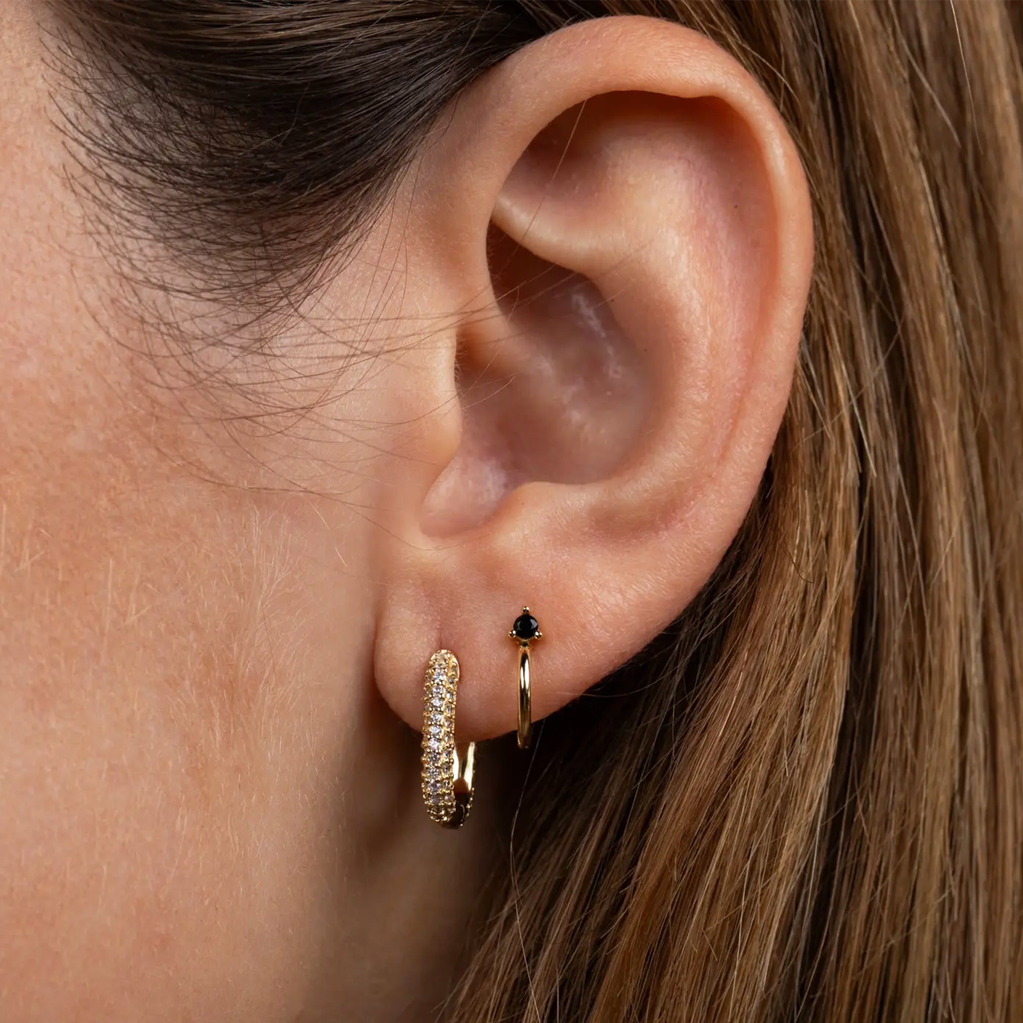 The Open Mini Hoop Earring in Black by Jax Kelly adds a burst of style with its mini black cz stone and hugs the ear for a versatile wear.