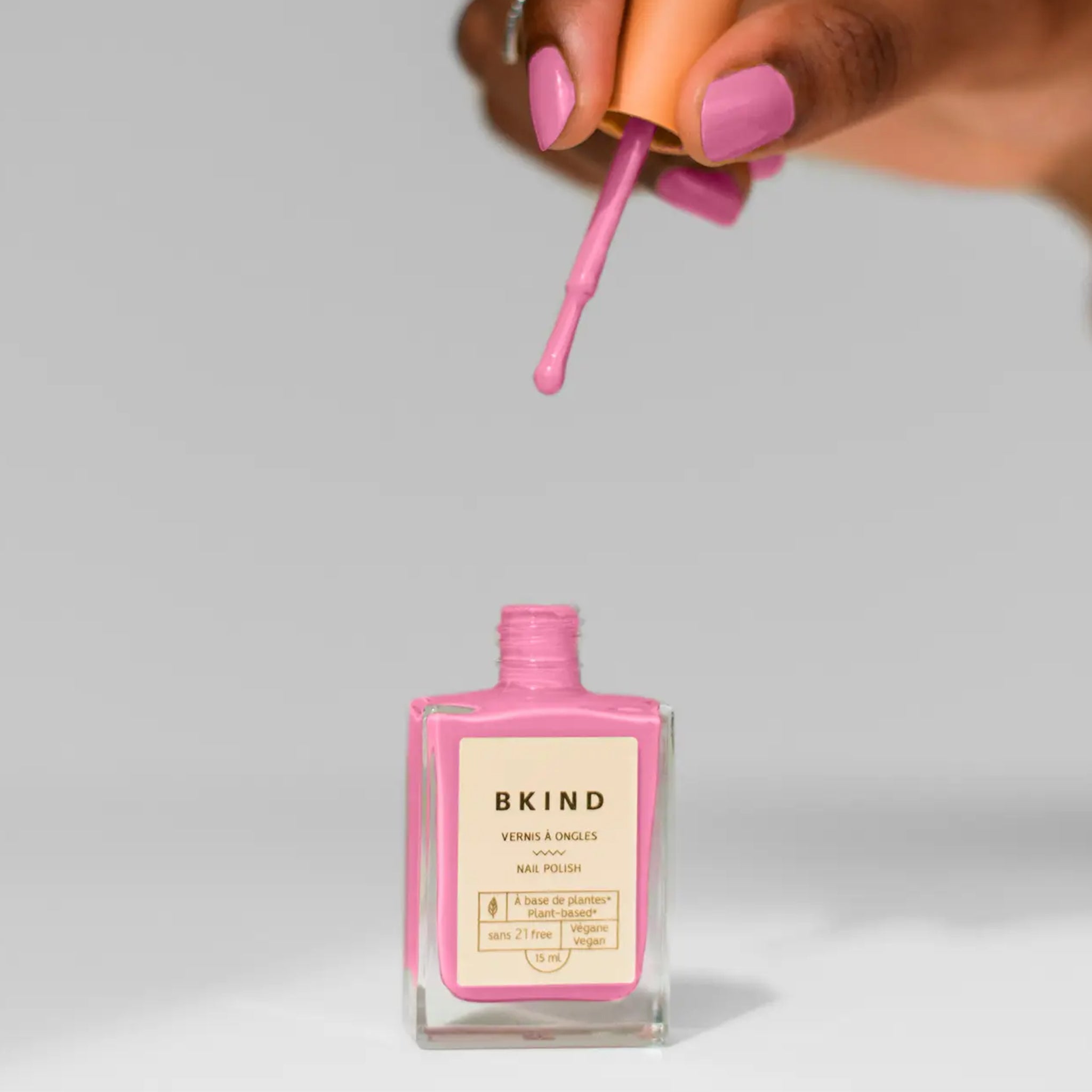 Introducing the Roar nail polish featuring a creamy and dusty Barbie pink. BKIND's vegan, 77% plant-based, 21-FREE, professional-grade nail polish applies easily, dries quickly, and gives you a long-lasting, luminous finish.