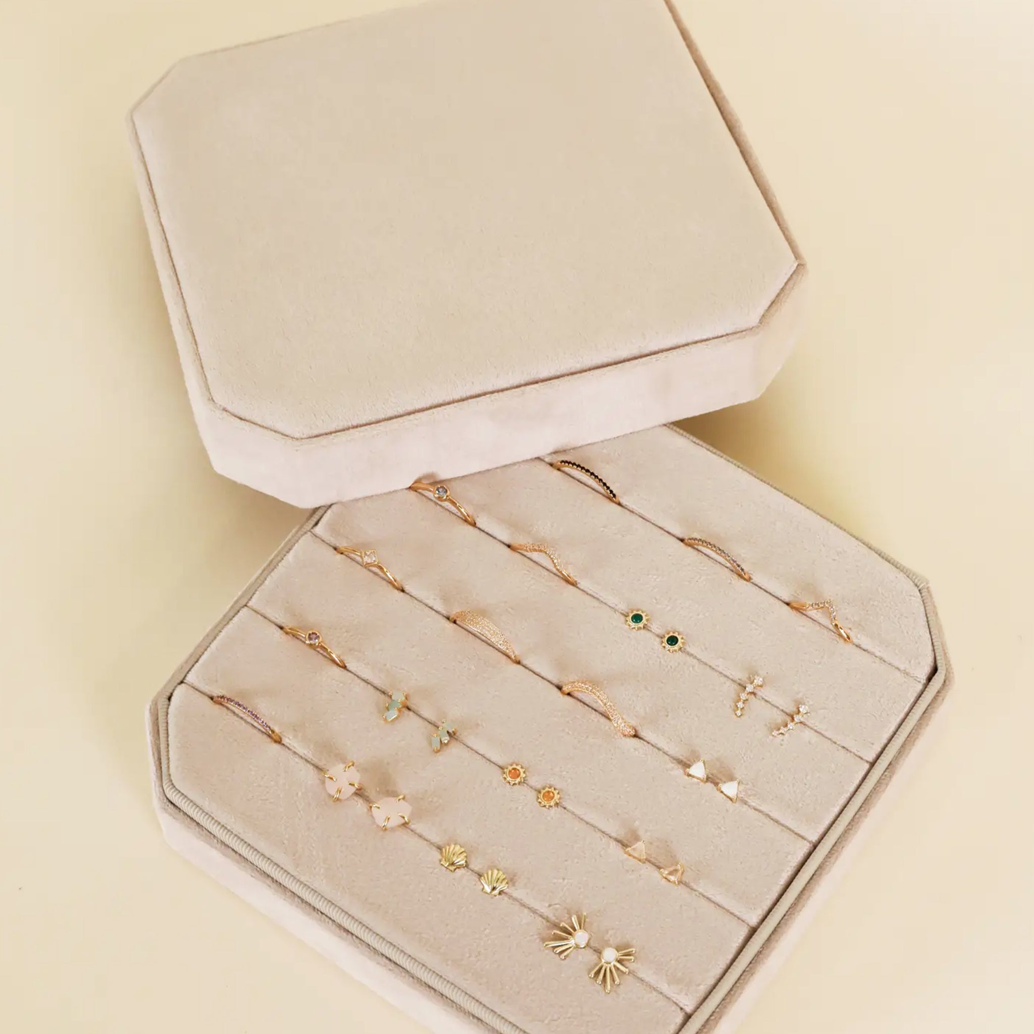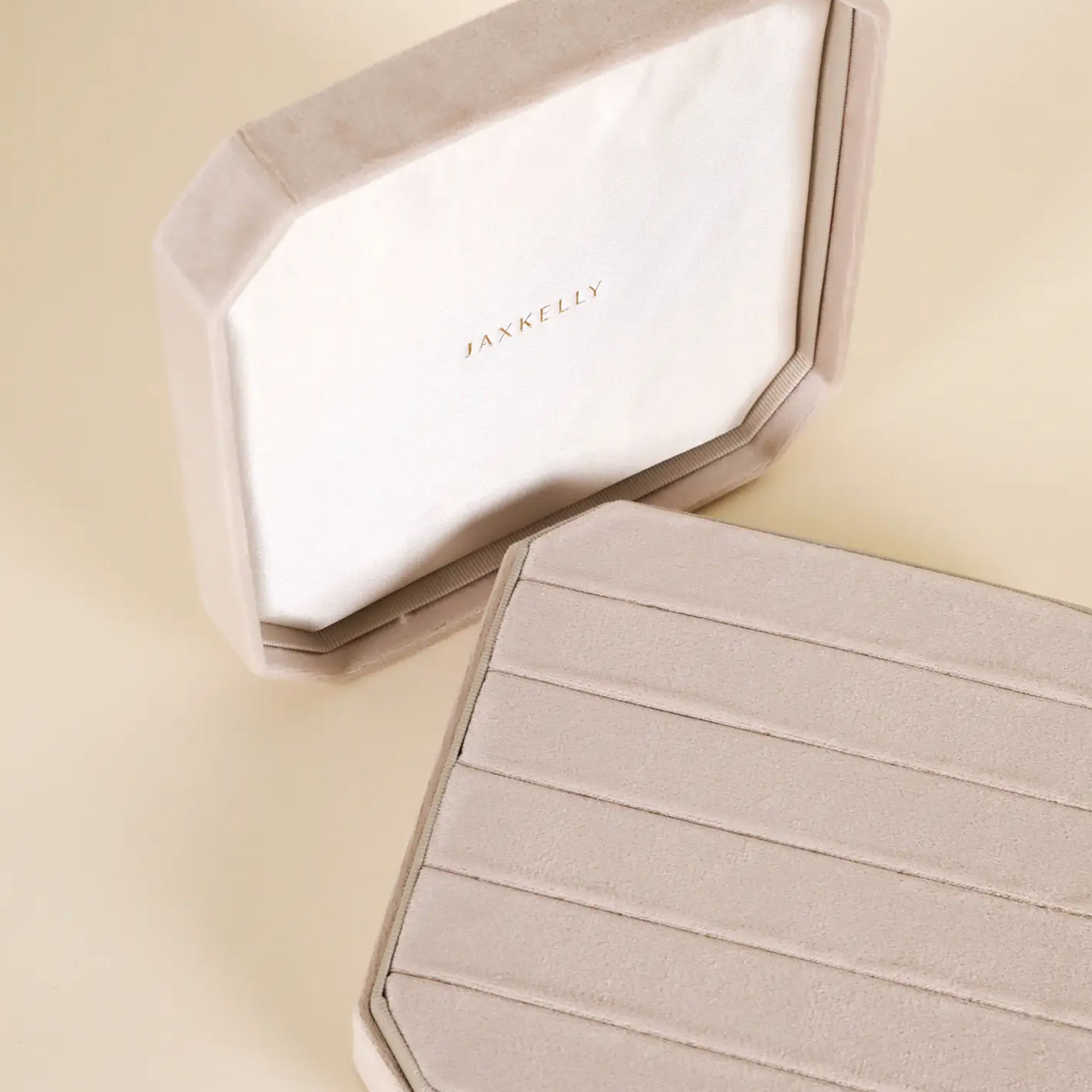 Introducing JaxKelly's versatile and stylish jewelry case in the shade cream, designed to be used as a beautiful earring or ring box in your jewelry display or to be sold as a jewelry gift box.