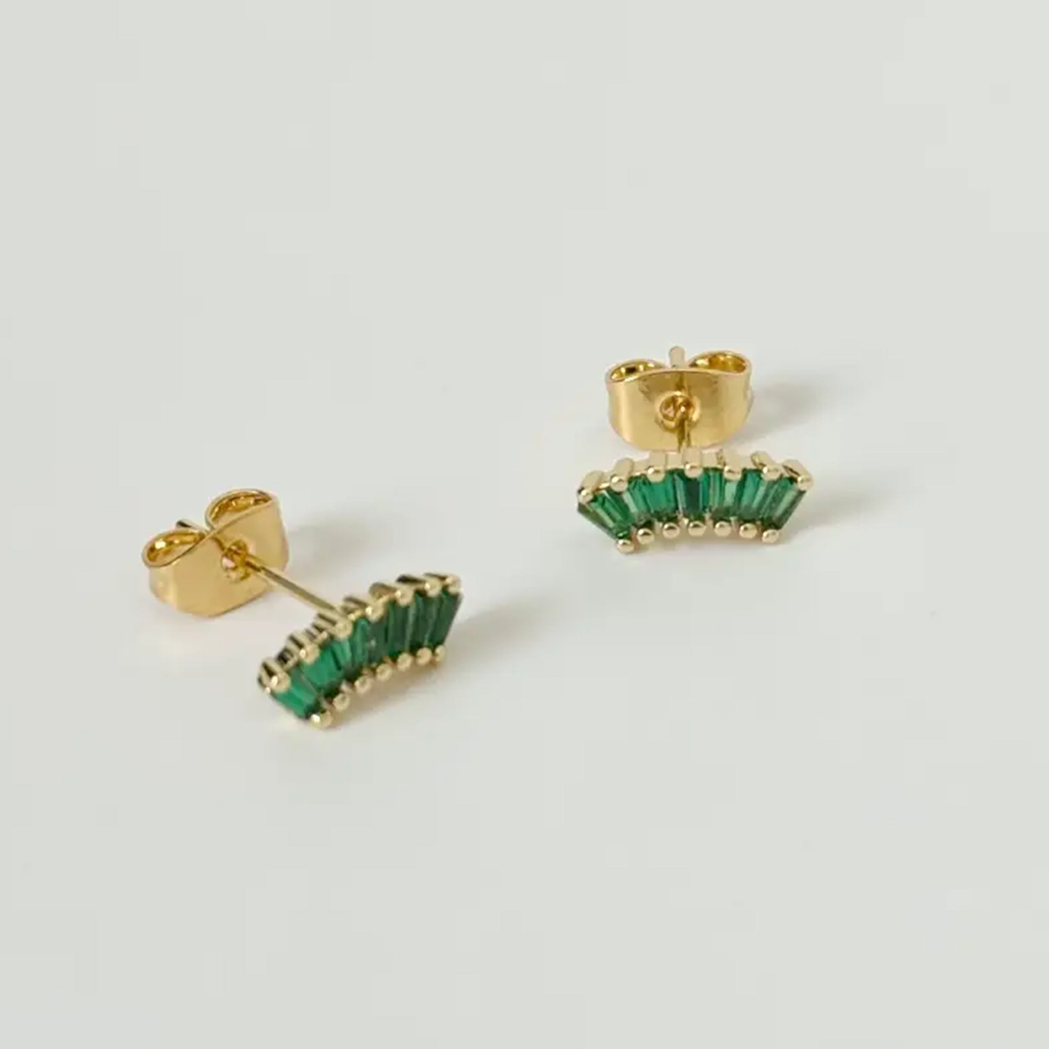 Introducing the new Vendetta Stud Earrings featuring 14k gold filled stud earrings and a shimmering emerald green CZ baguettes in dainty arch shape. These babies are perfect for a night out, and minimal enough for everyday wear! They make the perfect gift for any jewelry lover!