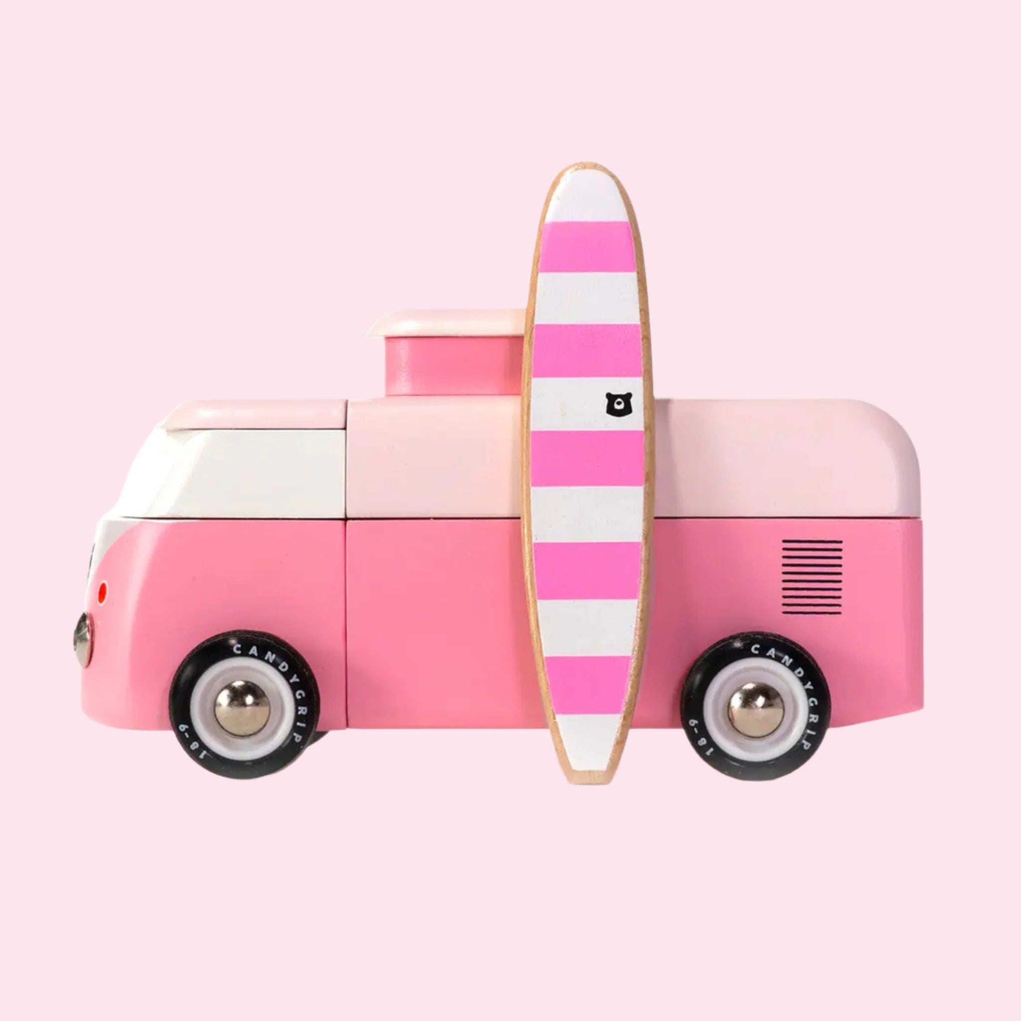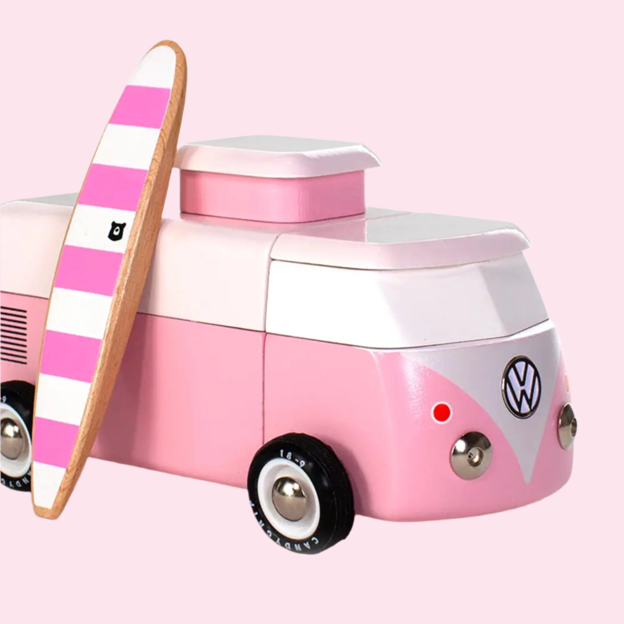 Playtime just got better! The Beach Bus is back! Now officially licensed by VW - check out the shiny emblem on the front. This iconic Volkswagen Type 2 comes with a magnetic camper top and surf board.