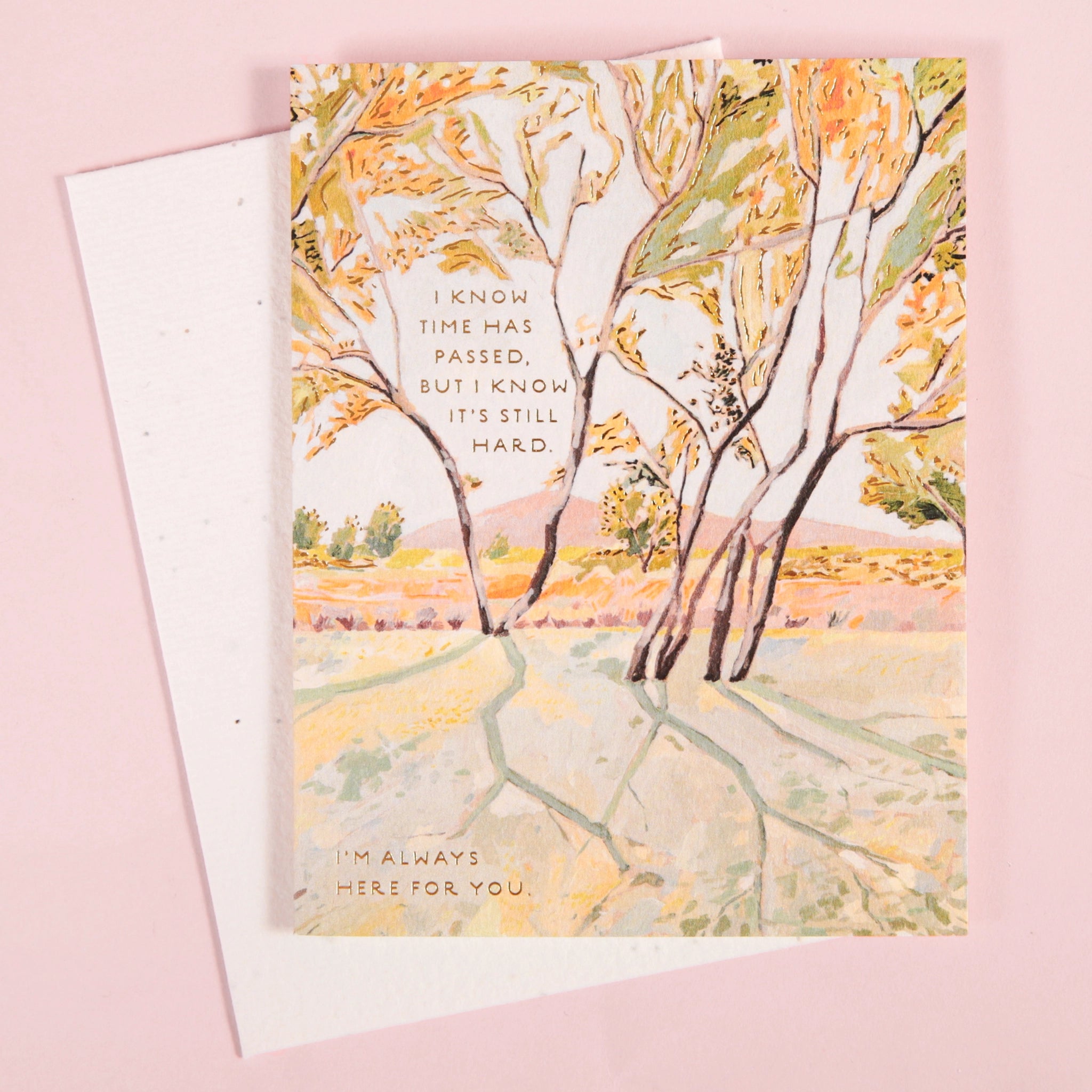 Grief is hard and an ongoing process. Send your condolences with the In The Shade Card, featuring a beautiful nature illustration and a blank interior for a personalized heartfelt message.