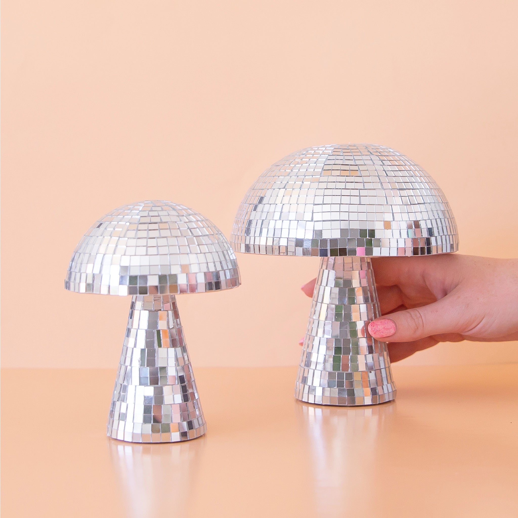 Bring some '70s vibes to your living space with this funky Disco Mushroom! This retro-style home decor is sure to get your guests on the dance floor or light up any room when the sunlight hits the silver mirrored pieces. So spin some classic disco and enjoy!
