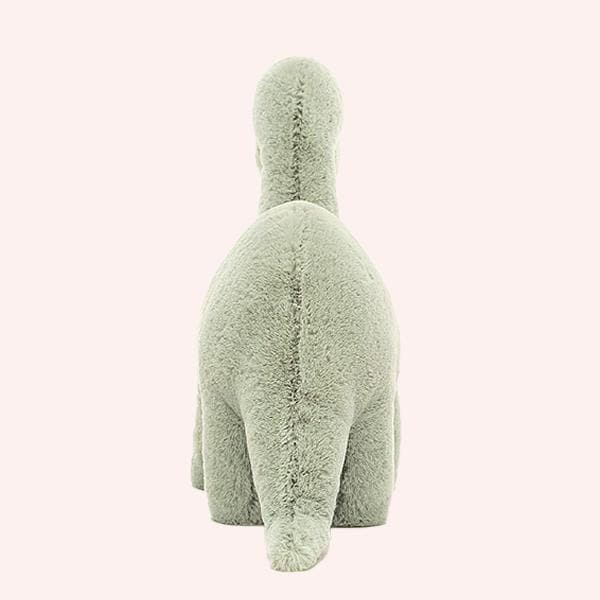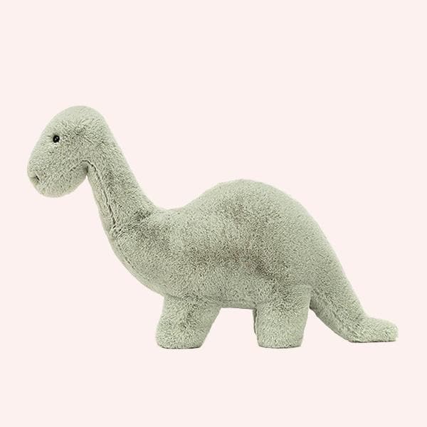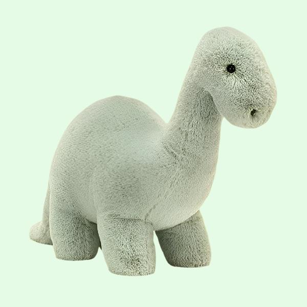 Fossilly Brontosaurus is minty-soft, with a long, long tail and a strong stretch neck.  It's handy for reaching the tasty ferns!