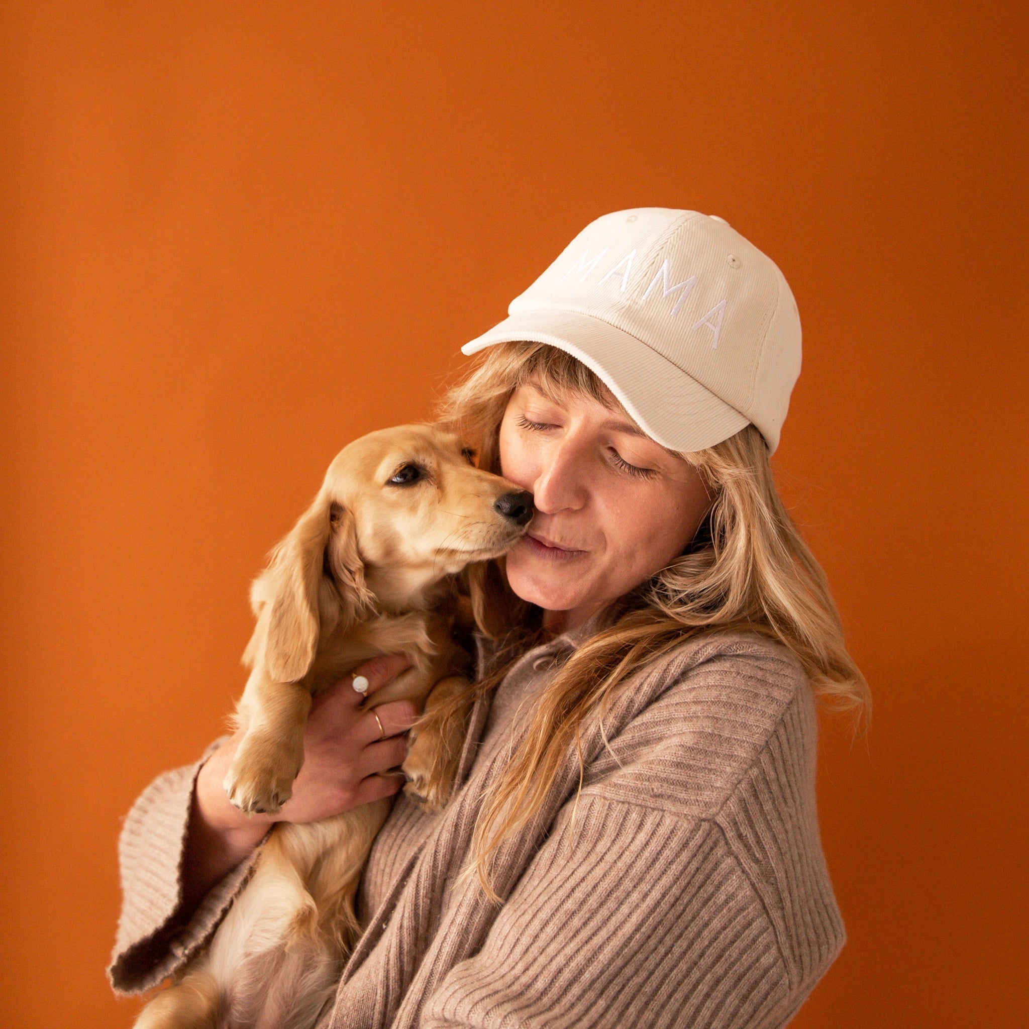 Two gold rings that reads 'mama' in cursive within the band. Each ring sold sparely.