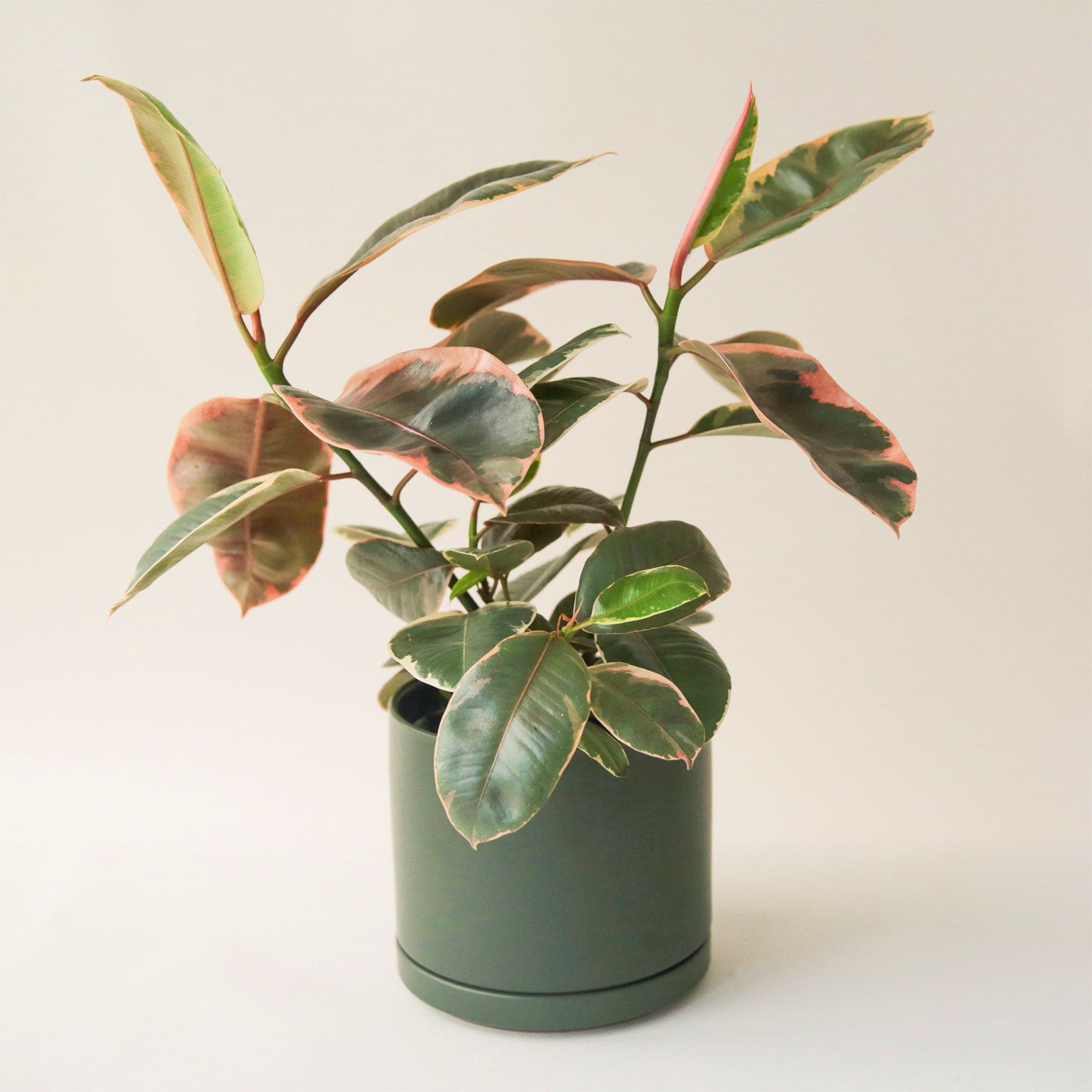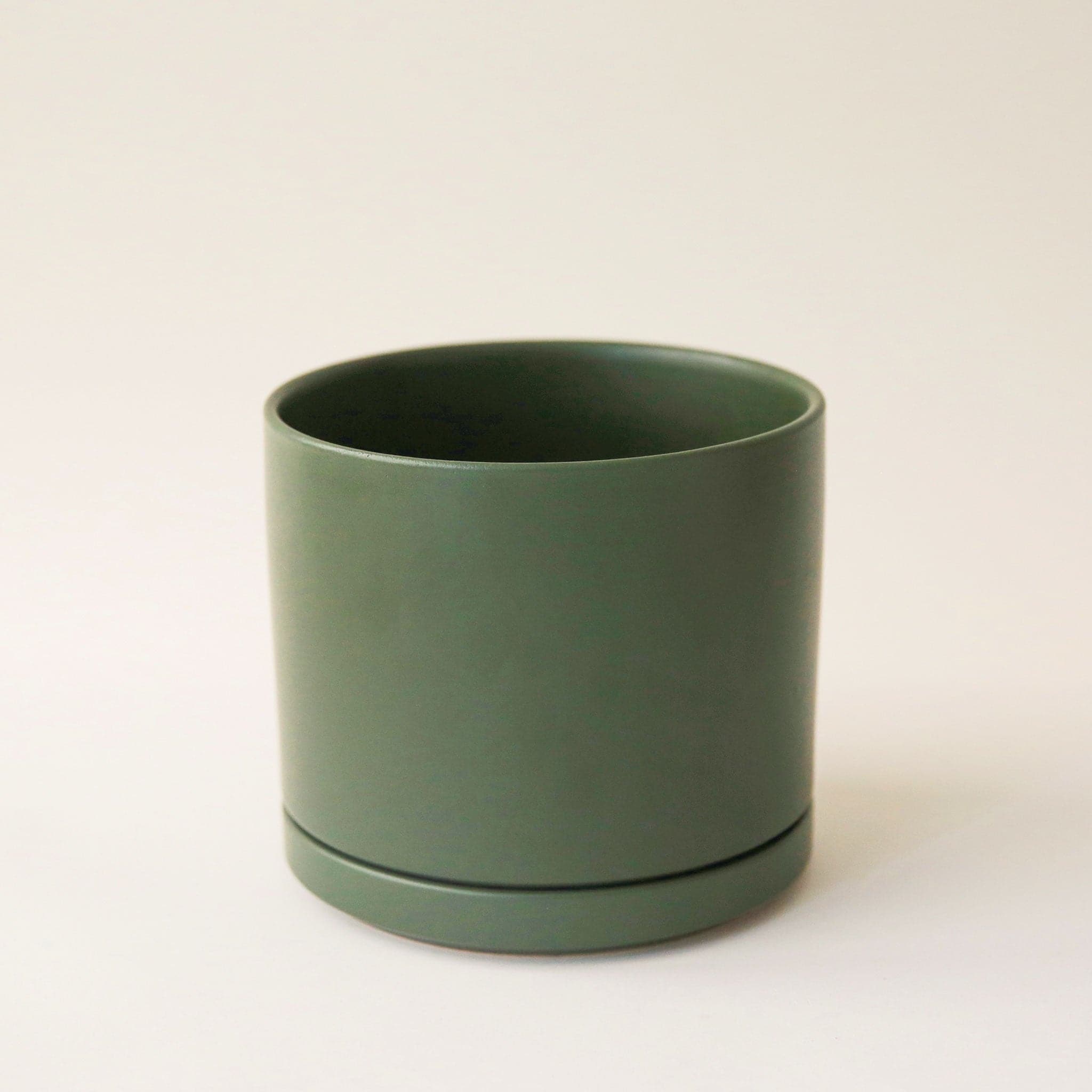 Ceramic Cylinder Planter & Saucer | Forest Green