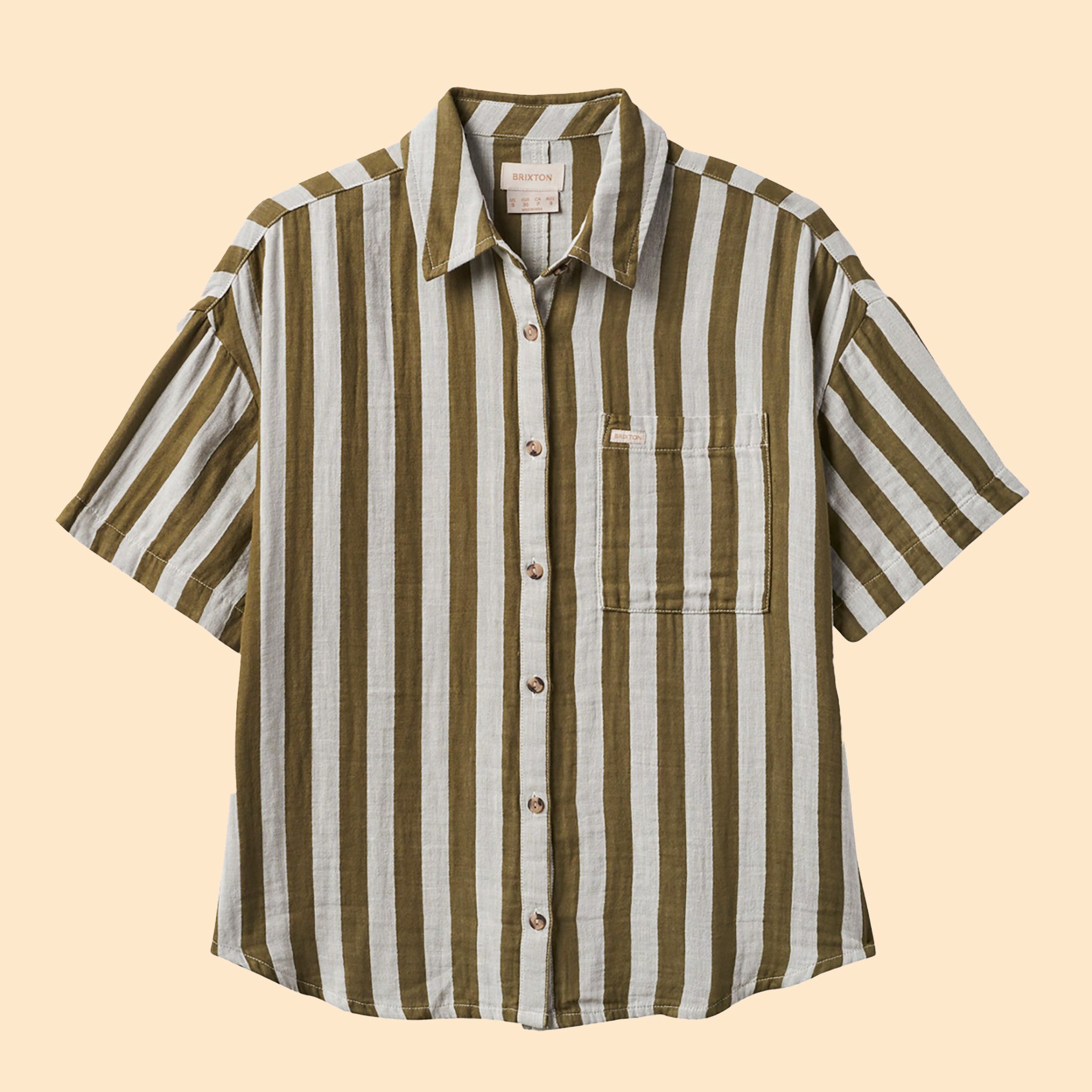 Mykonos Stripe BF Woven Shirt | Military Olive