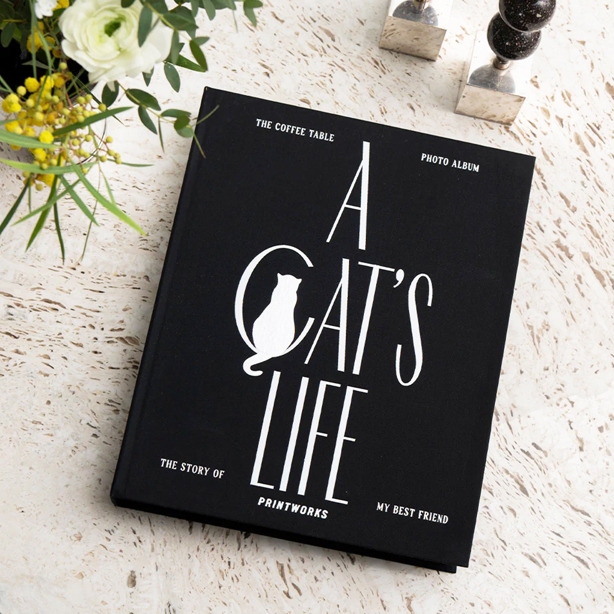 Explore this purrrfect photo album dedicated to the cherished life of your valued feline companion. "A Cat's Life" boasts a stunning black cloth cover with elegant white text. Made with a soft cloth exterior, this album contains 30 high-quality black photo pages, perfect for effortlessly displaying your favorite memories.