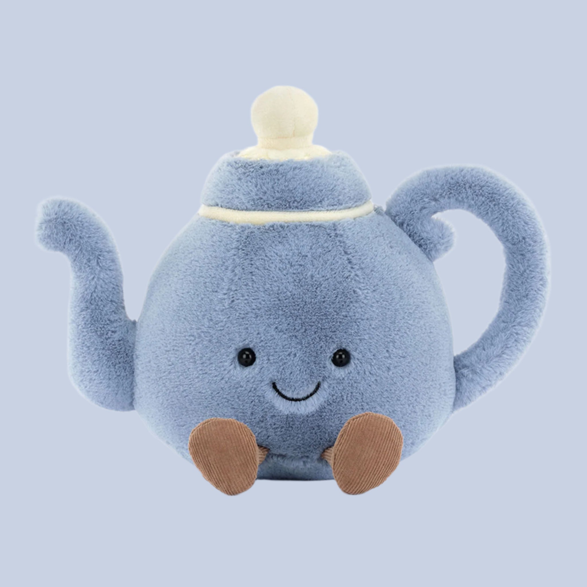 Amuseables Vicky Teapot is the perfect teatime companion. Soft in blue fur with cream lid accents, Vicky has an elegantly curved handle and spout. With a big stitched smile and fine cord legs, Vicky is already ready for a soothing cuppa or two.