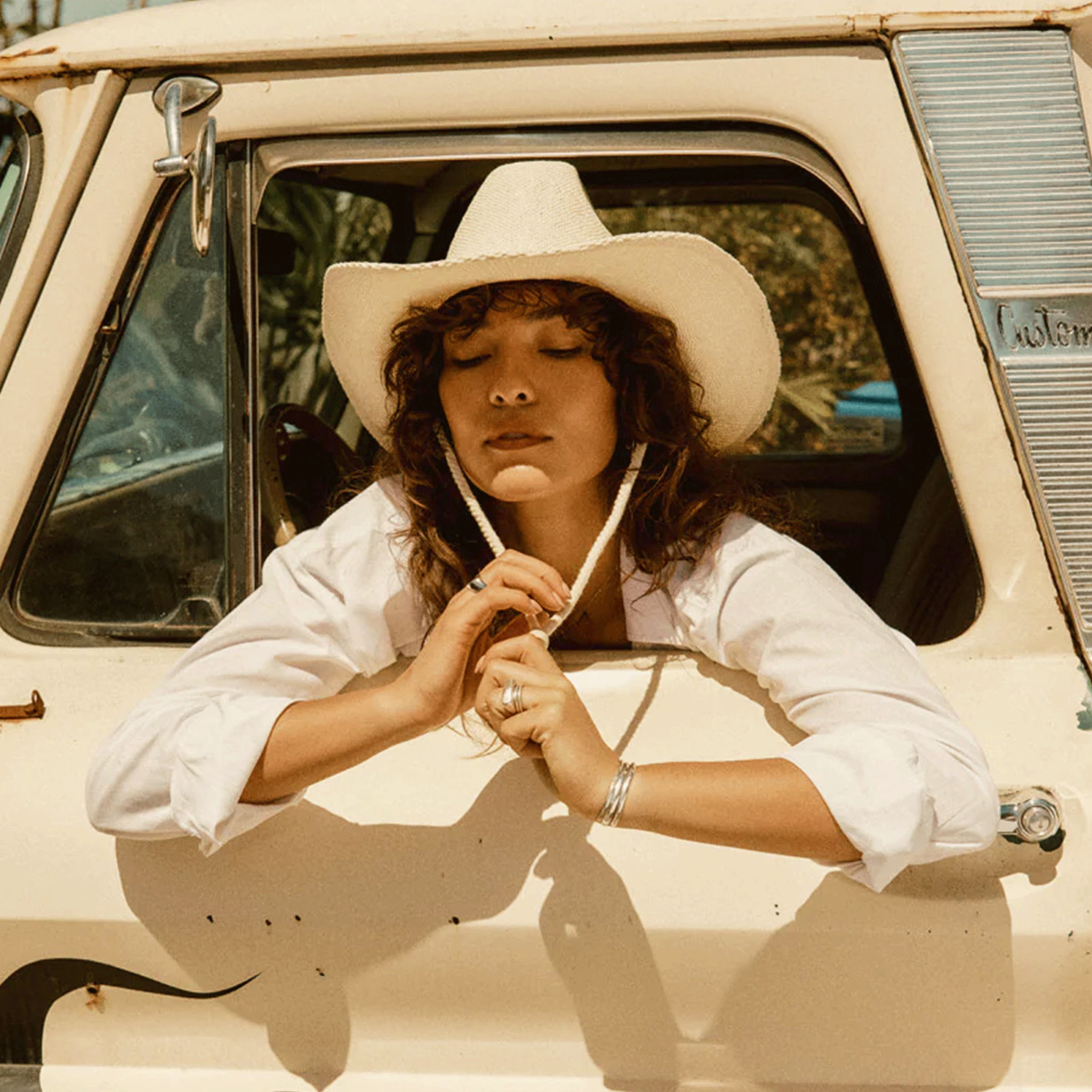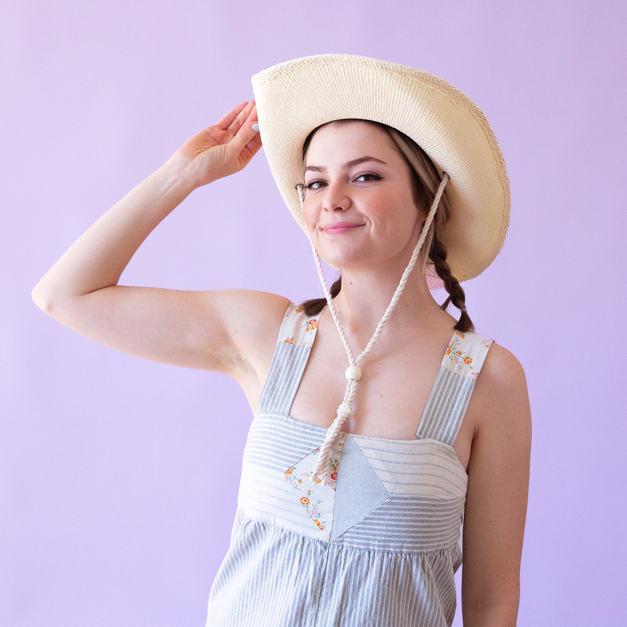 The Austin Straw Cowboy hat is an ultra-breathable, lightweight hat with Western style. It’s crafted sun-protective artisanal straw in a medium structured weave that retains its shape. The brim features a classic side roll topped with a cotton drawcord so you can wear it on your neck or secure your fit.