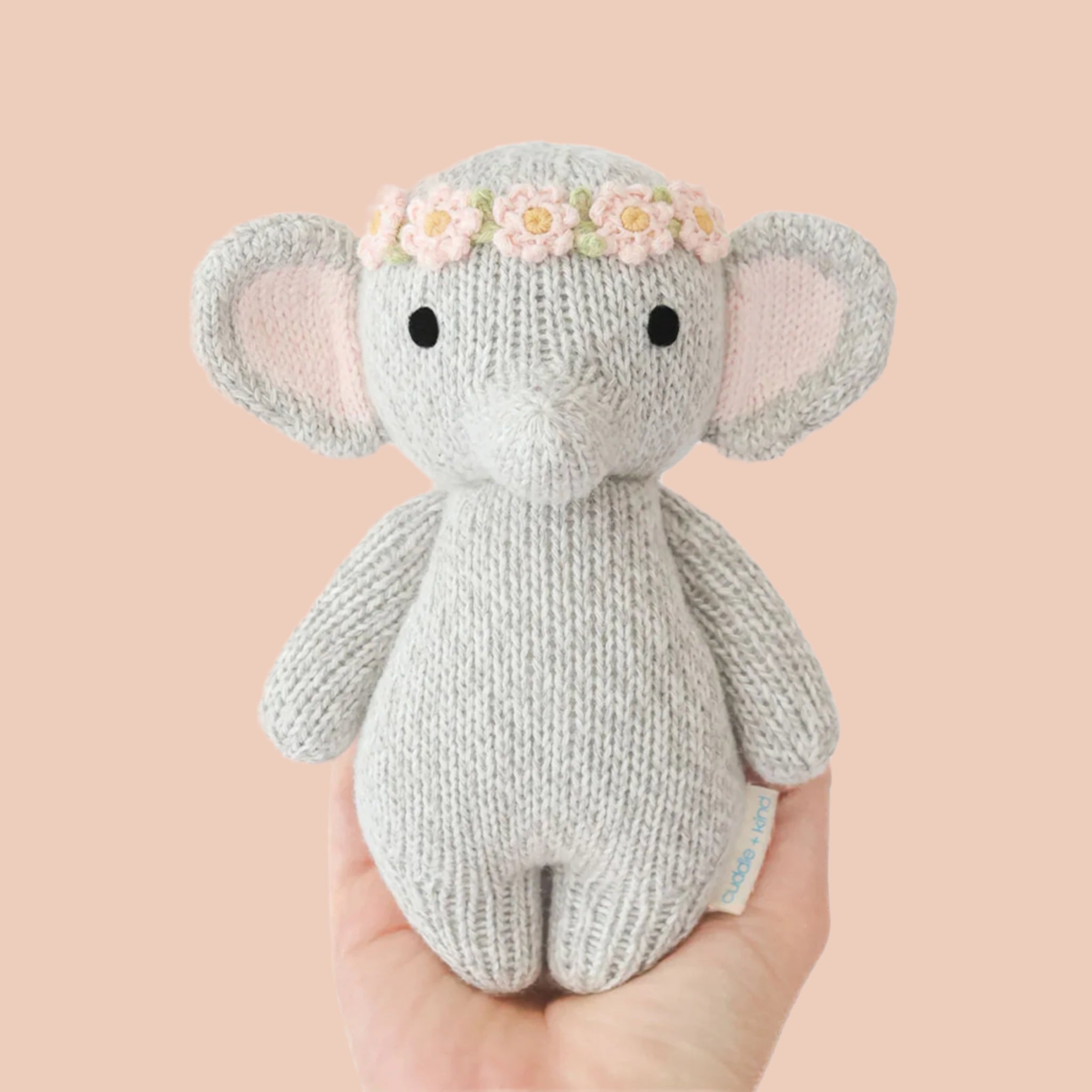 Meet the Baby Elephant in Blush Floral, a charming 7” hand-knit friend made from soft, natural 100% cotton yarn. Perfectly sized for little hands, this adorable companion is designed to be cherished for a lifetime. Every purchase provides 5 meals to children in need and supports artisans with fair trade income. Collect this lovable elephant and share the joy of giving while adding a sweet touch to your stuffed animal family!