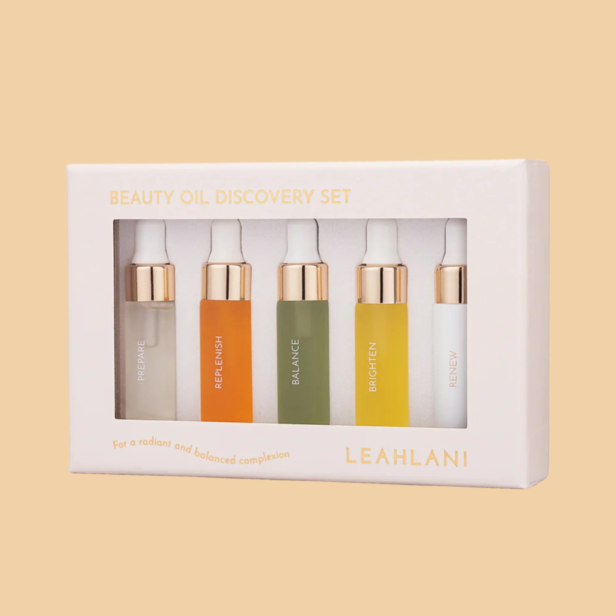This indulgent set features Leahlani's bestselling beauty oils, designed to soothe, brighten, regenerate, and replenish your skin. With organic botanicals and nourishing ingredients, these moisturizing elixirs and balancing serums create a radiant complexion. Try all of our Leahlani oils and find your perfect recipe for glowing skin!