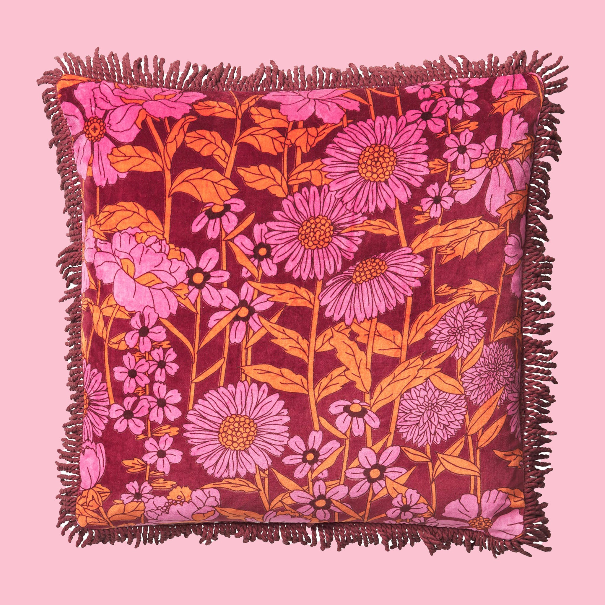 After a long, action-packed day, indulge in a moment of rest by sinking back into the charm and luxury of the Bernanda Velvet Cushion in the shade Port.