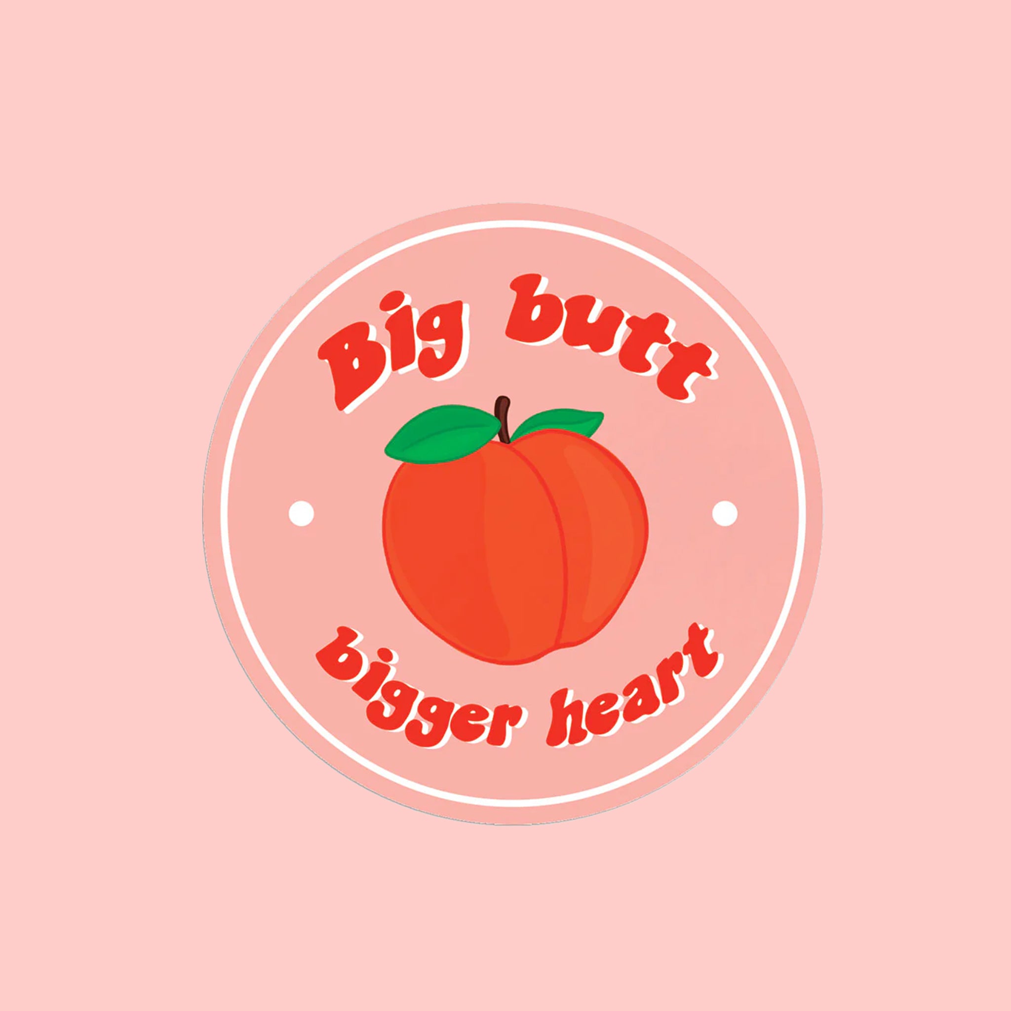 Show off your personality with the Big Butt, Bigger Heart Sticker! This cheeky sticker features a cute peach illustration, perfect for sticking on water bottles, laptops, notebooks, and more.
