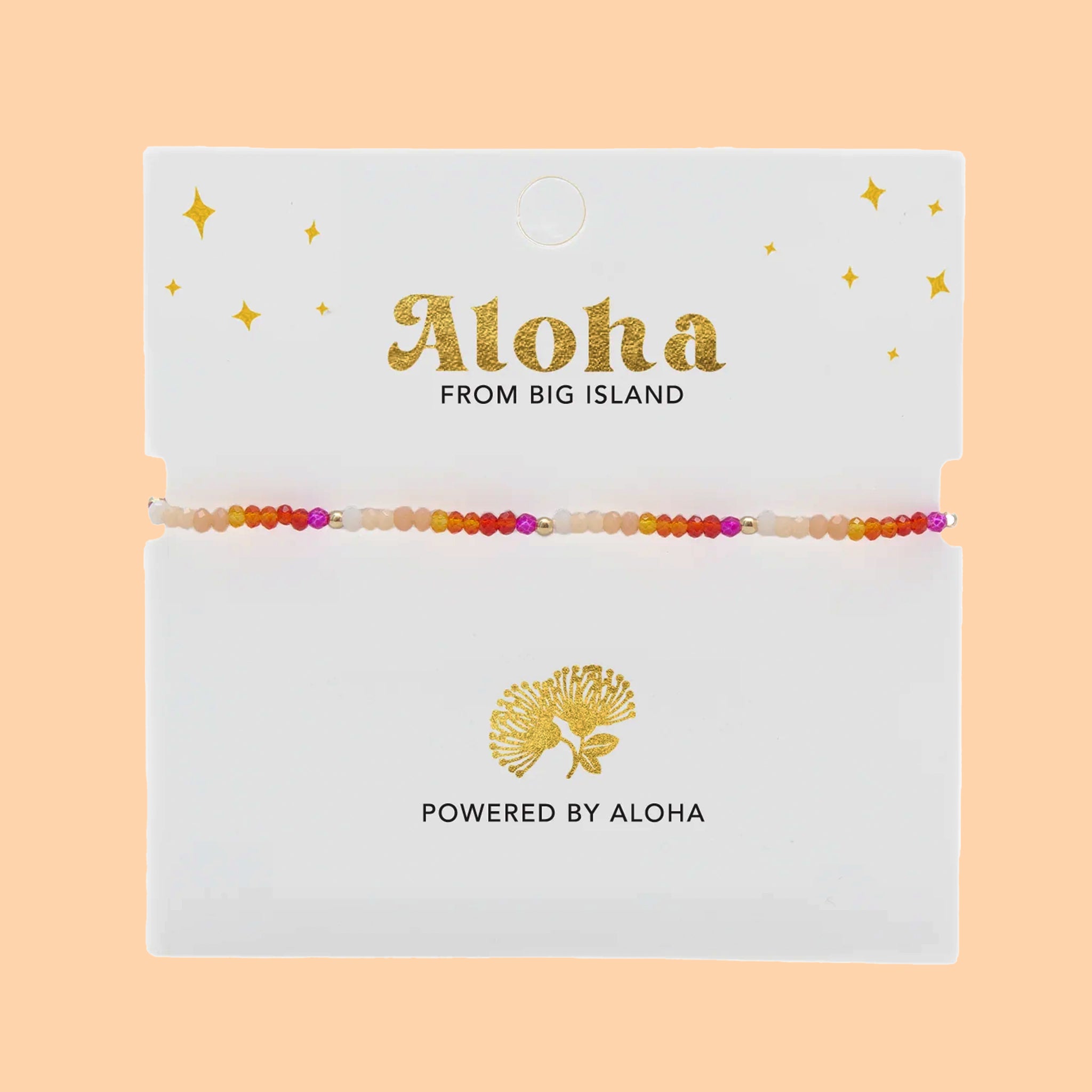 Known for its incredible resilience, and as a symbol of the interconnectedness between human and earth, the ‘Ōhi‘a Lehua flower holds a special place in the heart of Hawaiian culture. As the first flower to regenerate following a lava flow, its vibrant blossoms signal triumph and strength across the landscape. This beaded multi colored bracelet make the perfect gift or addition to your jewelry collection.