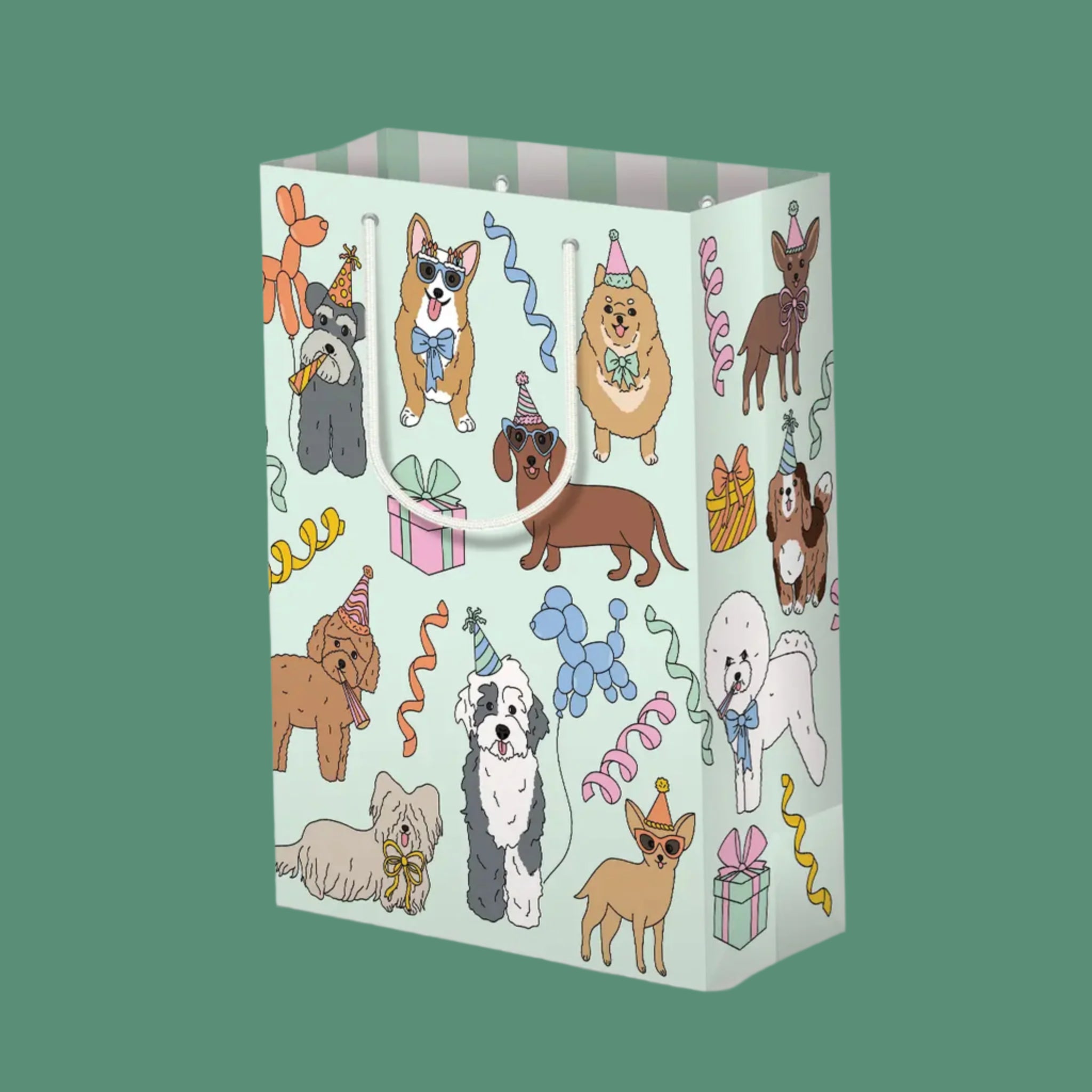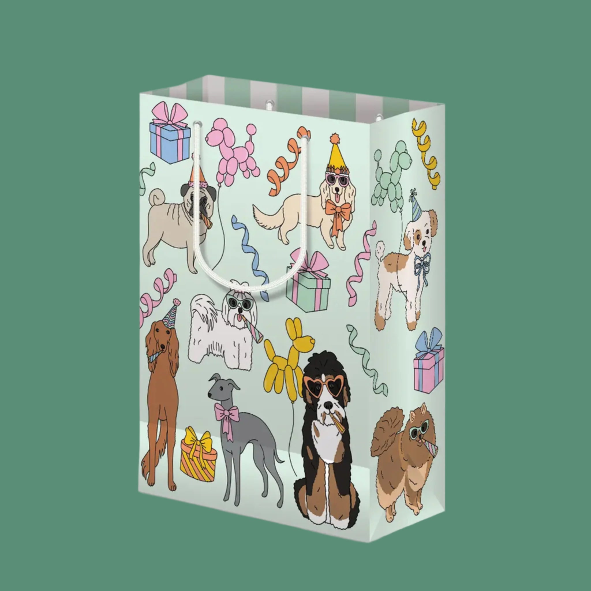 Celebrate in style with the Birthday Dogs Gift Bag, designed to delight any dog lover. Featuring playful illustrations of pups wearing party hats, surrounded by dog-shaped balloons, streamers, and presents, this bag adds a fun and festive touch to your gift. Perfect for birthdays and special occasions, it’s sure to bring joy and wagging tails to the celebration.