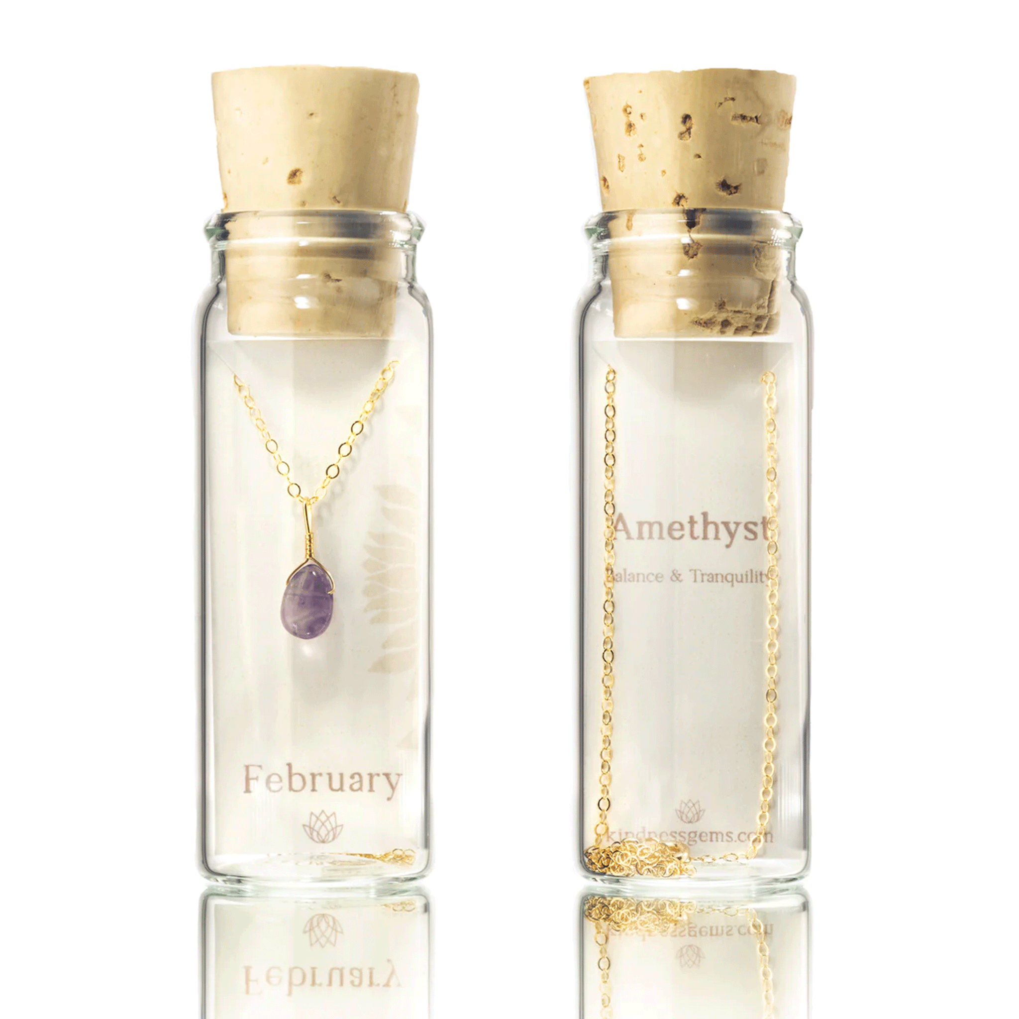 Make a personal statement with our Birthstone Necklace Bottle! Perfect as a birthday surprise or a special gift, this dainty chain holds an adorable birthstone gem to suit any personality.