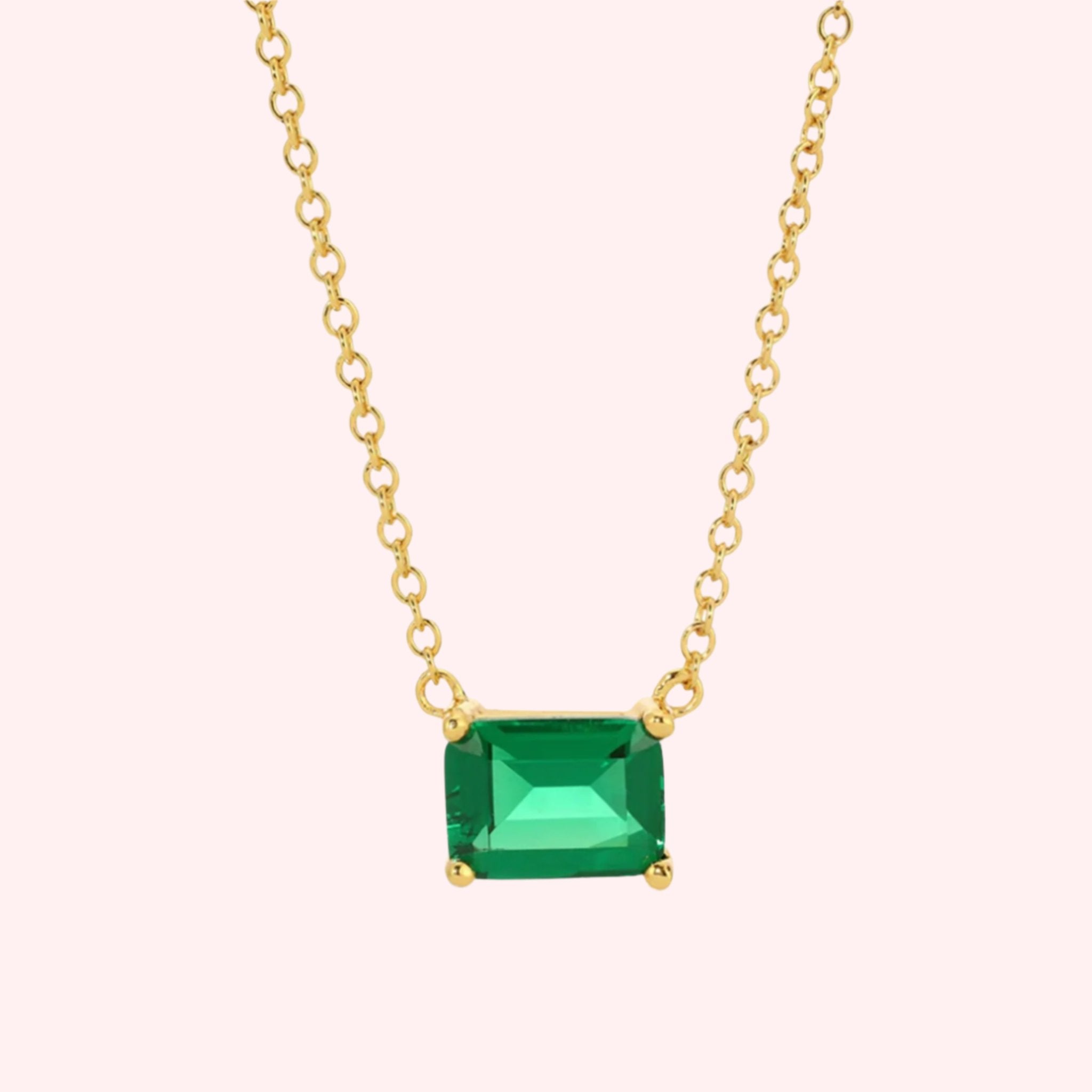 Add some sparkle to your style with Jurate's statement necklace featuring a green CZ emerald cut pendant that can be worn alone or layered up!