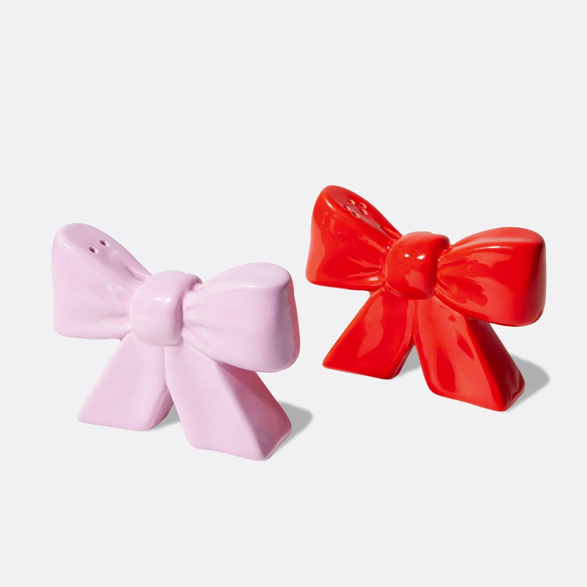 Spice up your dining experience with these adorable Bow Salt + Pepper Shakers. These pink and red shakers add a touch of fun and charm to your meals while also adding a pop of color to your table and impressing your guests.
