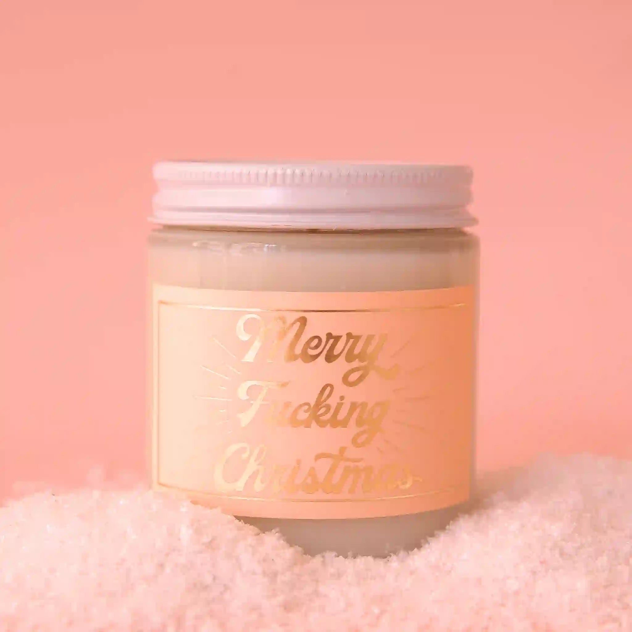 Light up your Christmas with our cheeky Merry F*ing Christmas Candle! The gold lettering and shimmering flame will brighten up your home while the Spiced Pear & Bourbon scent will fill it with the aromas of the holidays. Show your festive spirit and spread some cheer with this unique candle!