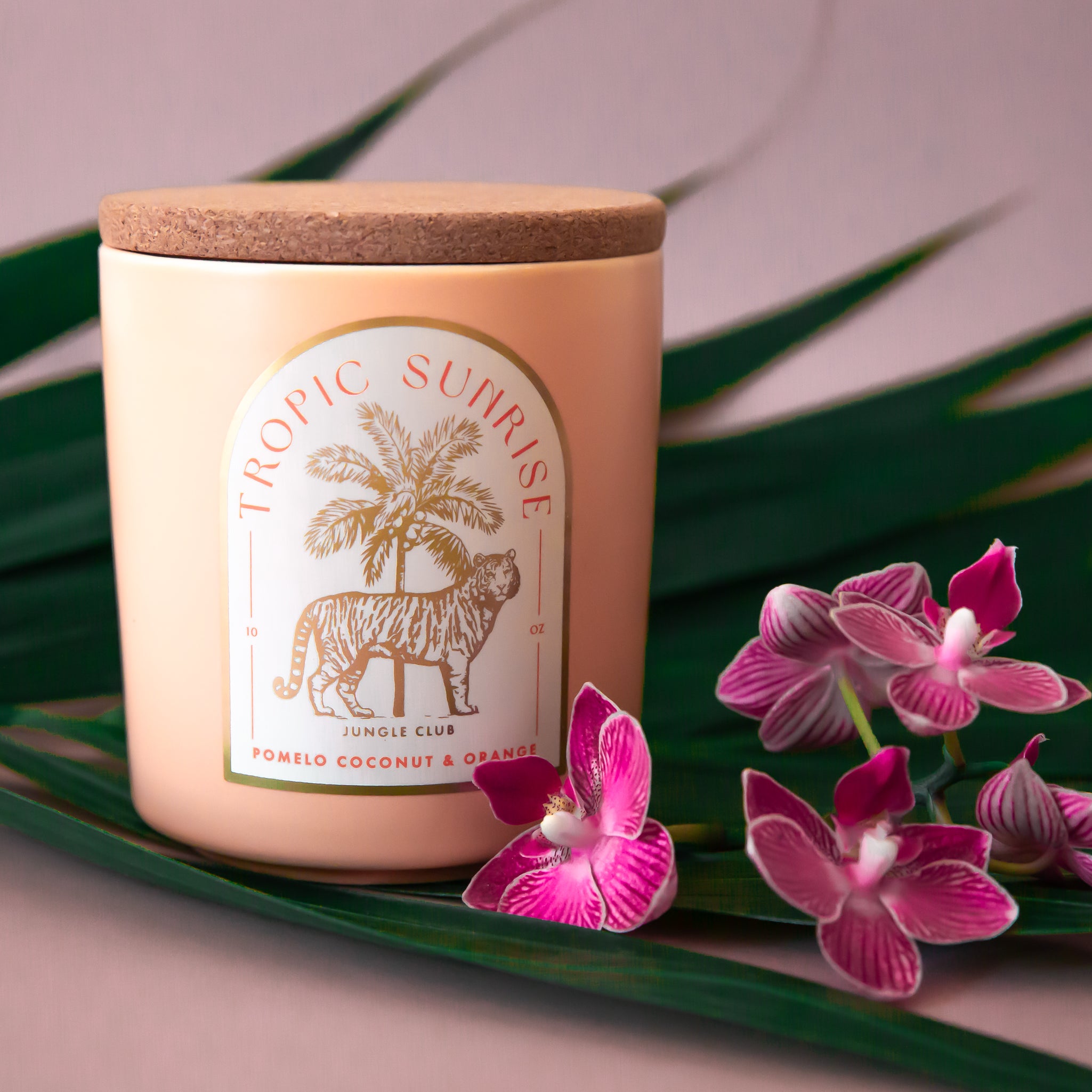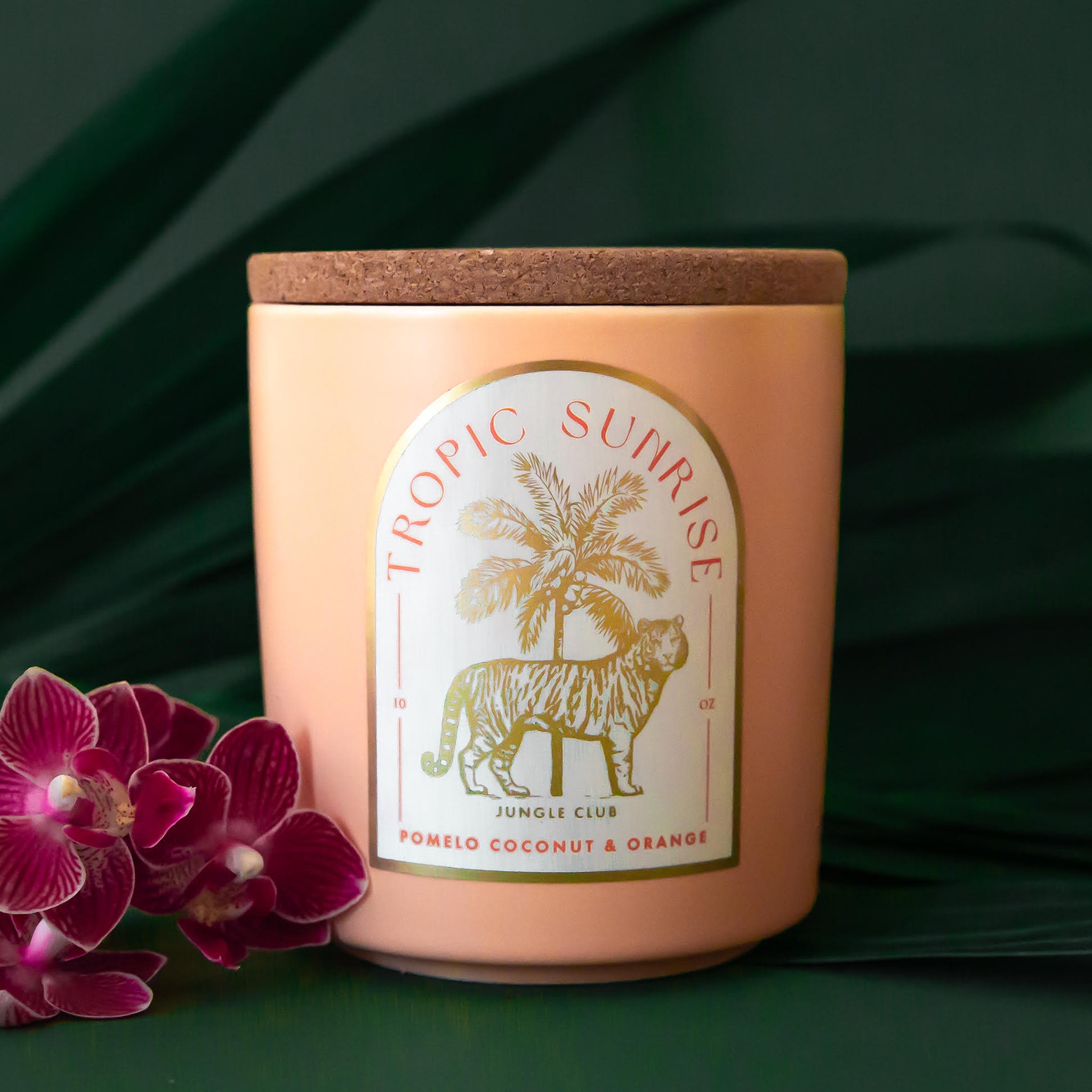Embrace the essence of paradise with the Tropic Sunrise Candle, elegantly housed in a warm peachy ceramic vessel paired with a cork lid. Hand-poured in sunny San Diego, this candle features a premium fragrance blended with paraffin-free coconut soy wax for an eco-friendly, clean burn.