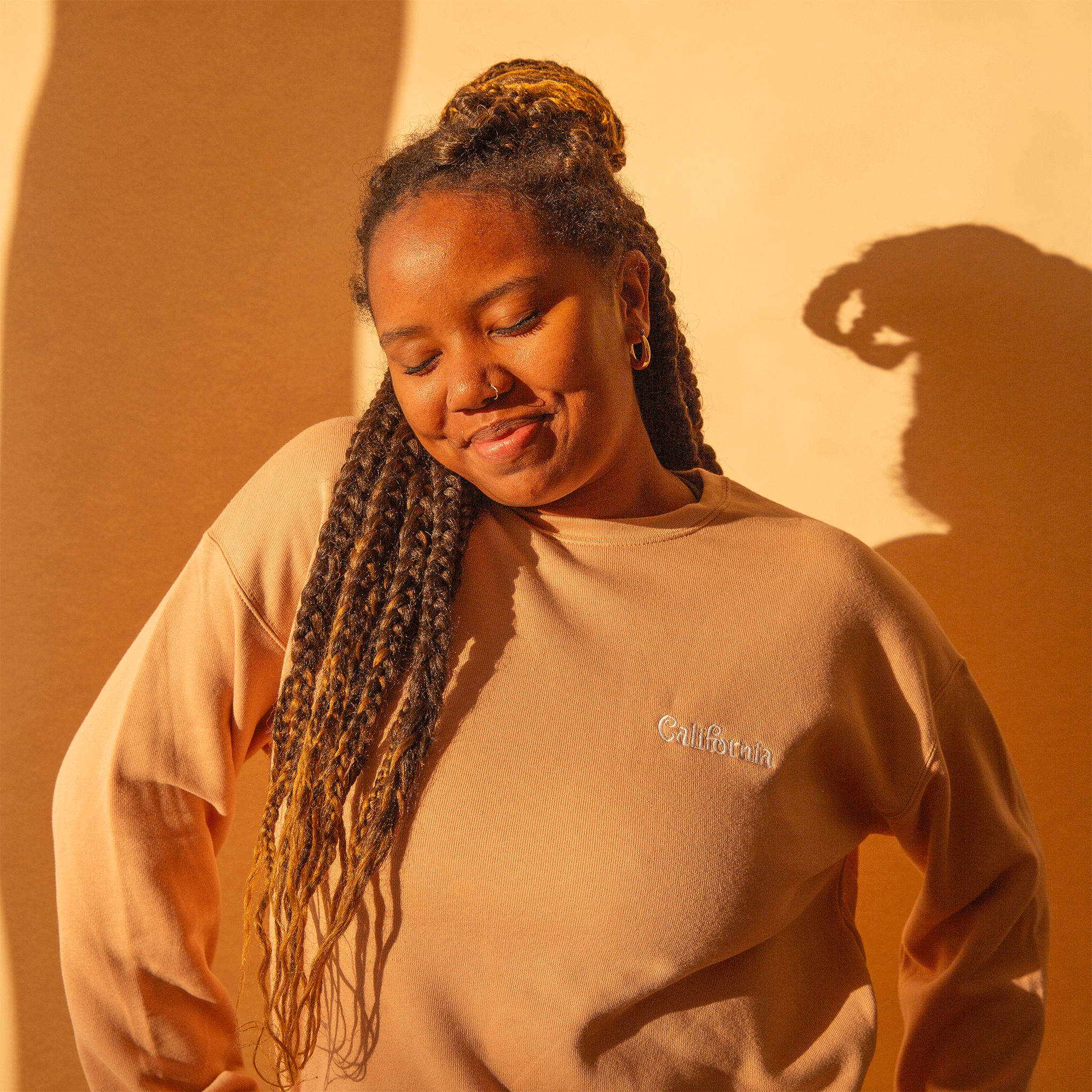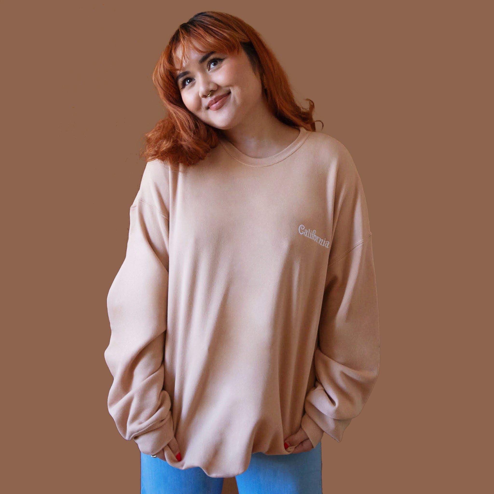 Keep it comfy and cute with our California Pullover. This unisex tan-colored crewneck lets you show your California pride with an embroidered text. Featuring dropped shoulders, ribbed cuffs and waistband, plus a super soft cotton-poly blend, our sweatshirt will have you looking adorable and feeling even cozier.