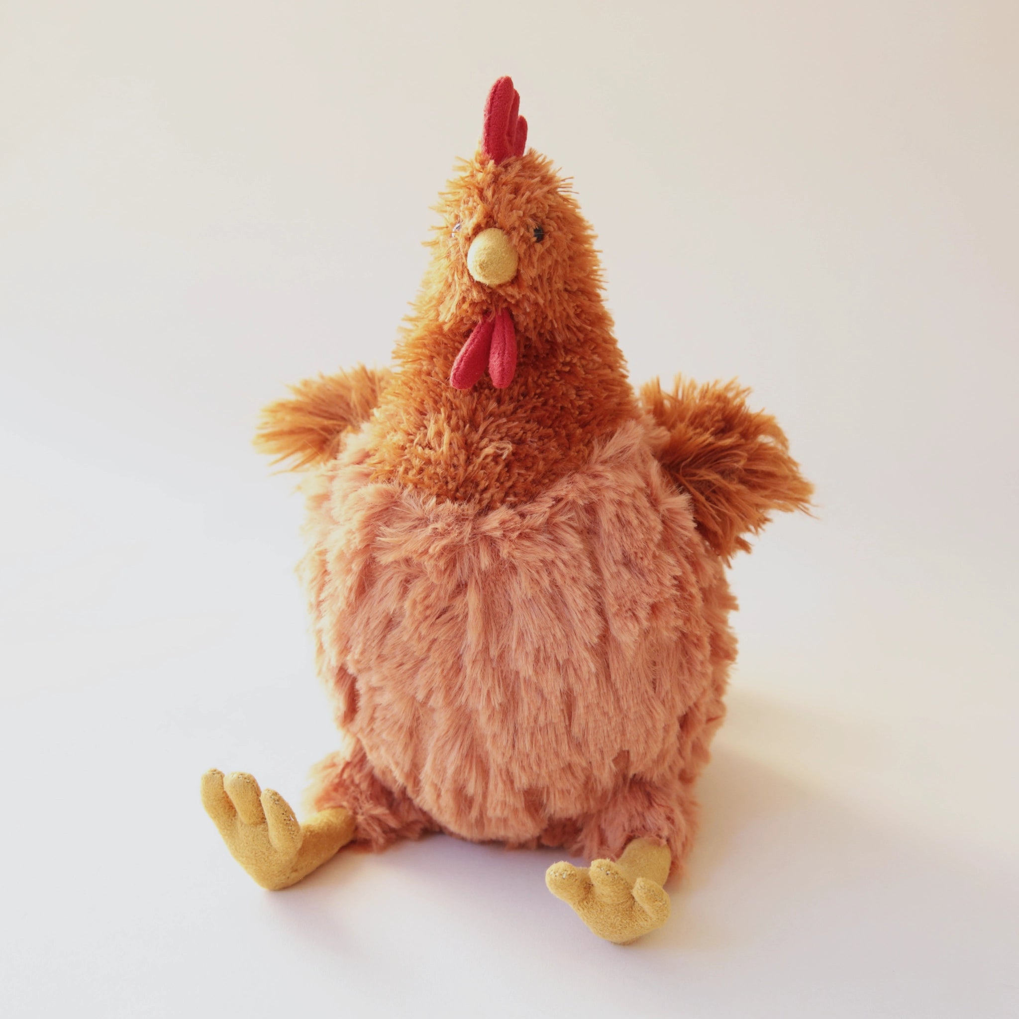 Cecile Chicken is simply stunning, with tons of tussly texture! Plump and perfect, this barnyard boss has a round ginger tum, scruffle spice wings and suedey mustard feet.