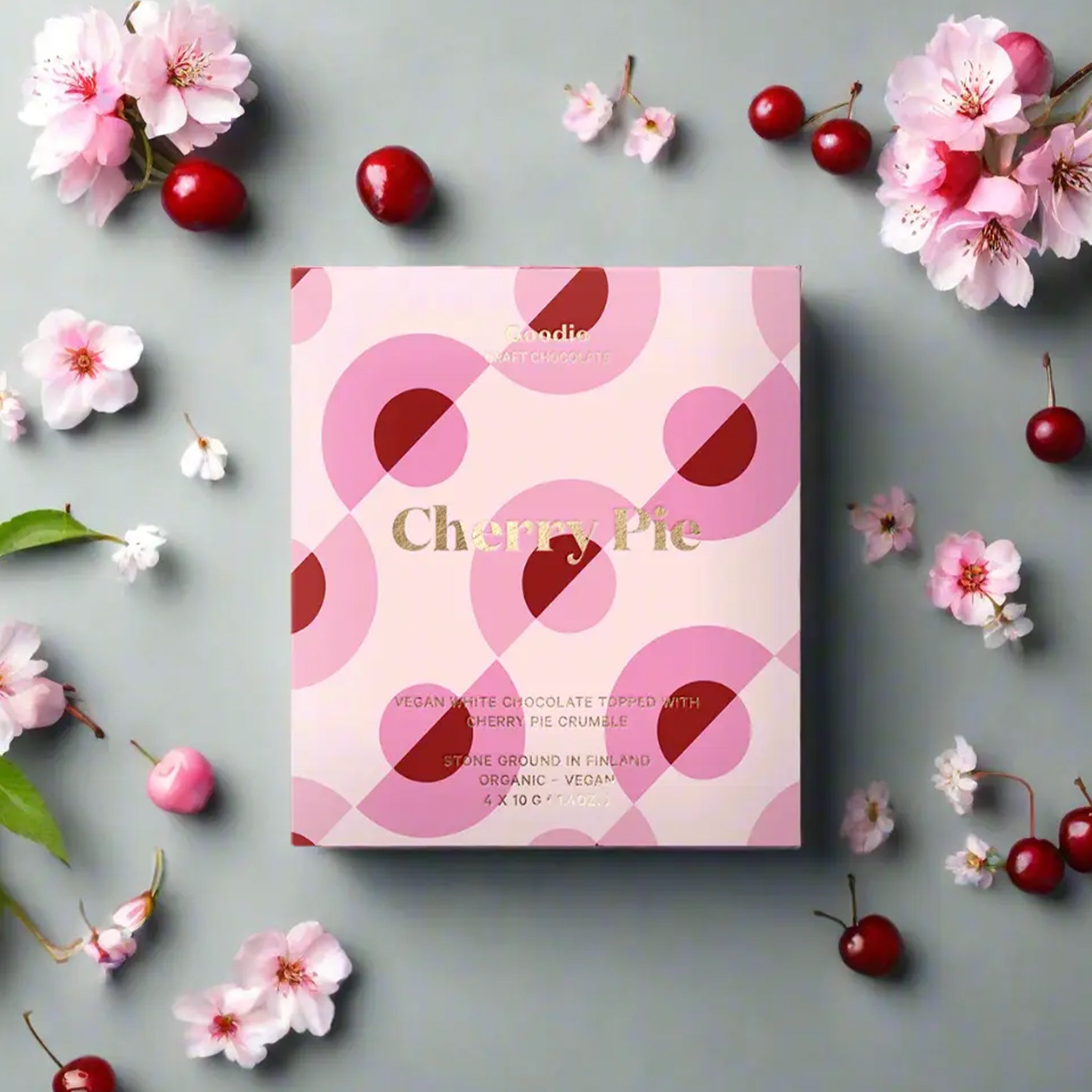 Indulge in spring's delicious flavors with Goodio's Cherry Pie Organic White Chocolate! Made with premium organic cherries and creamy caramel chocolate, this treat is not only rich and flavorful, but also satisfying and nourishing. Taste the benefits of high-quality, organic ingredients in every bite!
