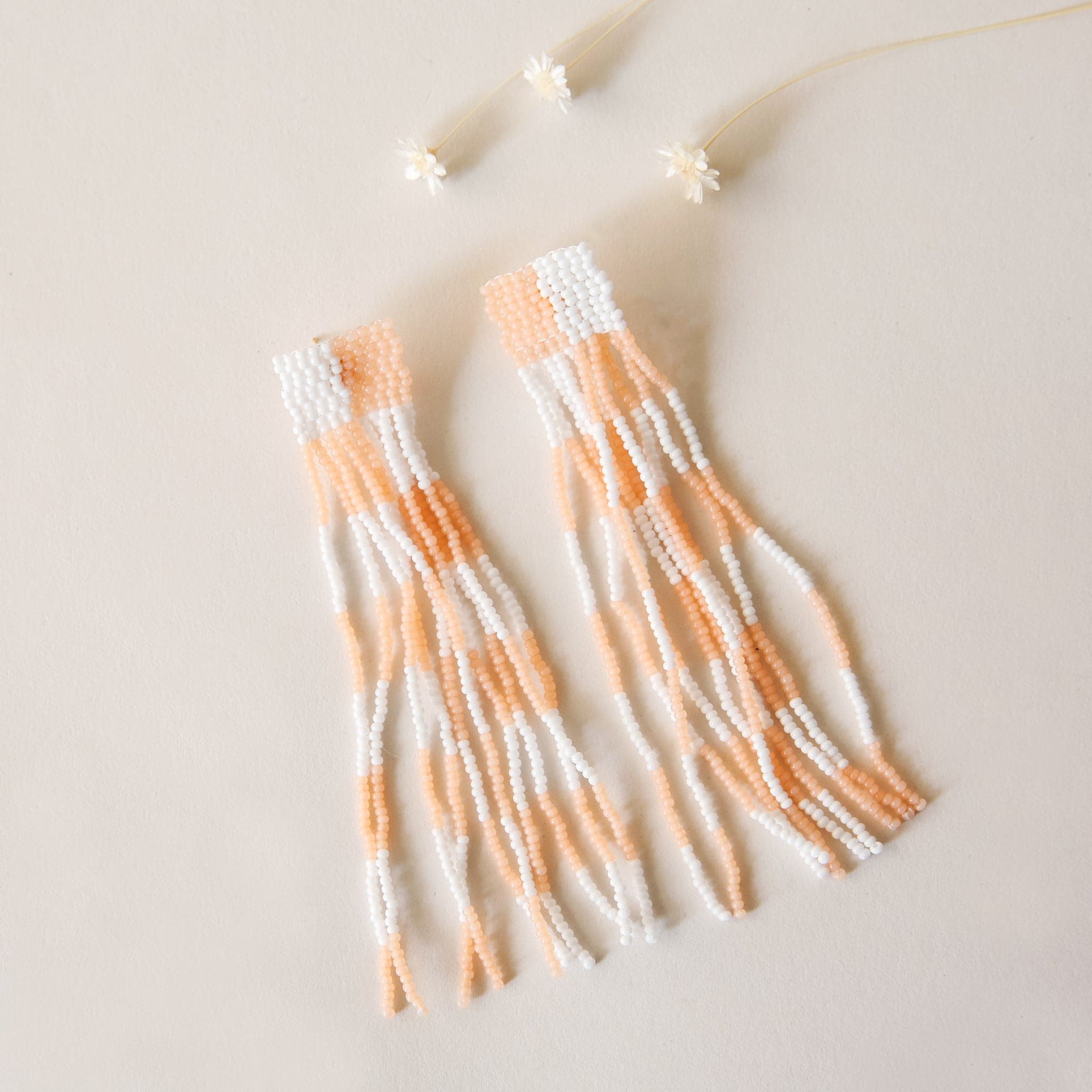 Clara is our favorite finishing touch for getaway ready looks! Clara is a hand-beaded plaid earring, with a narrow width and shorter fringe.