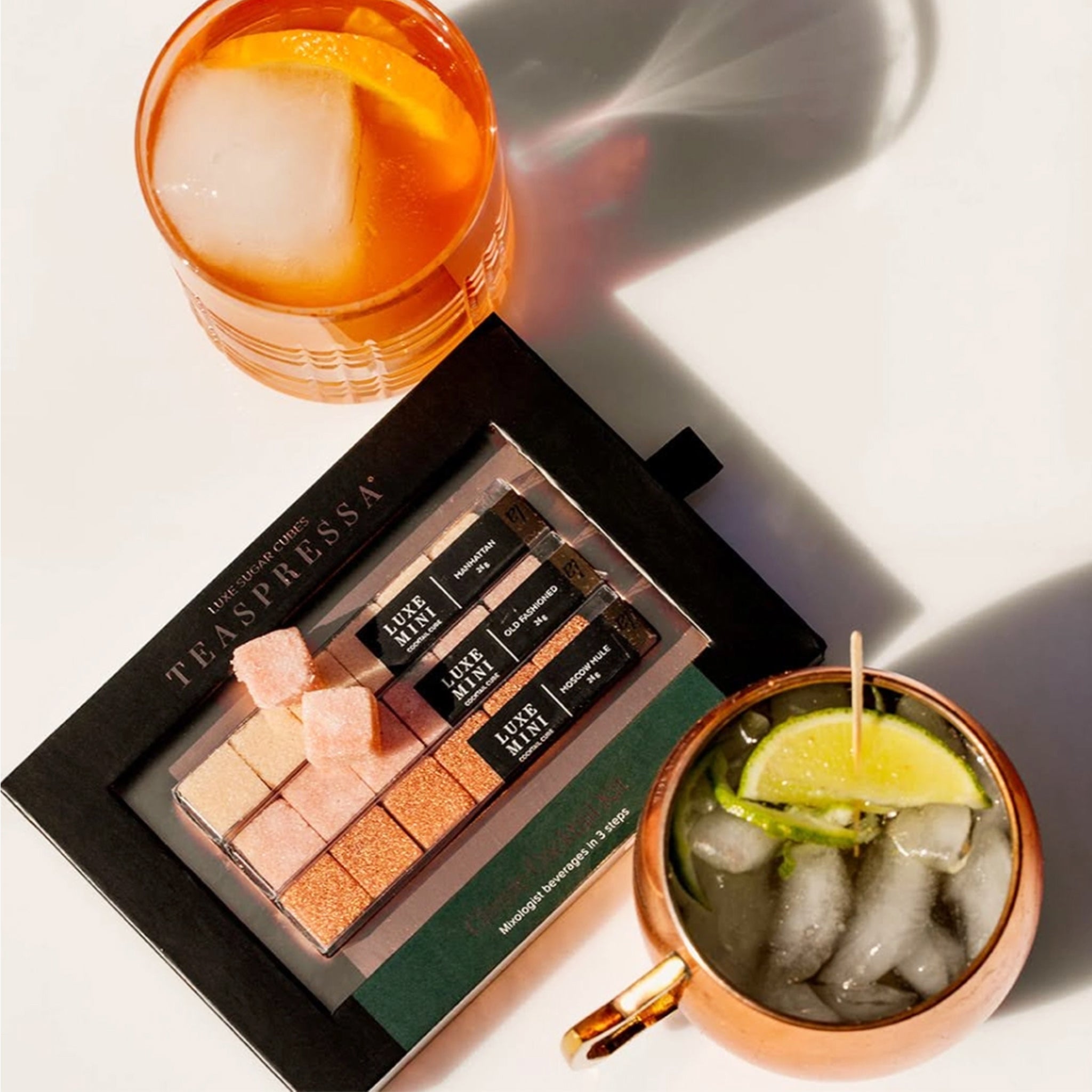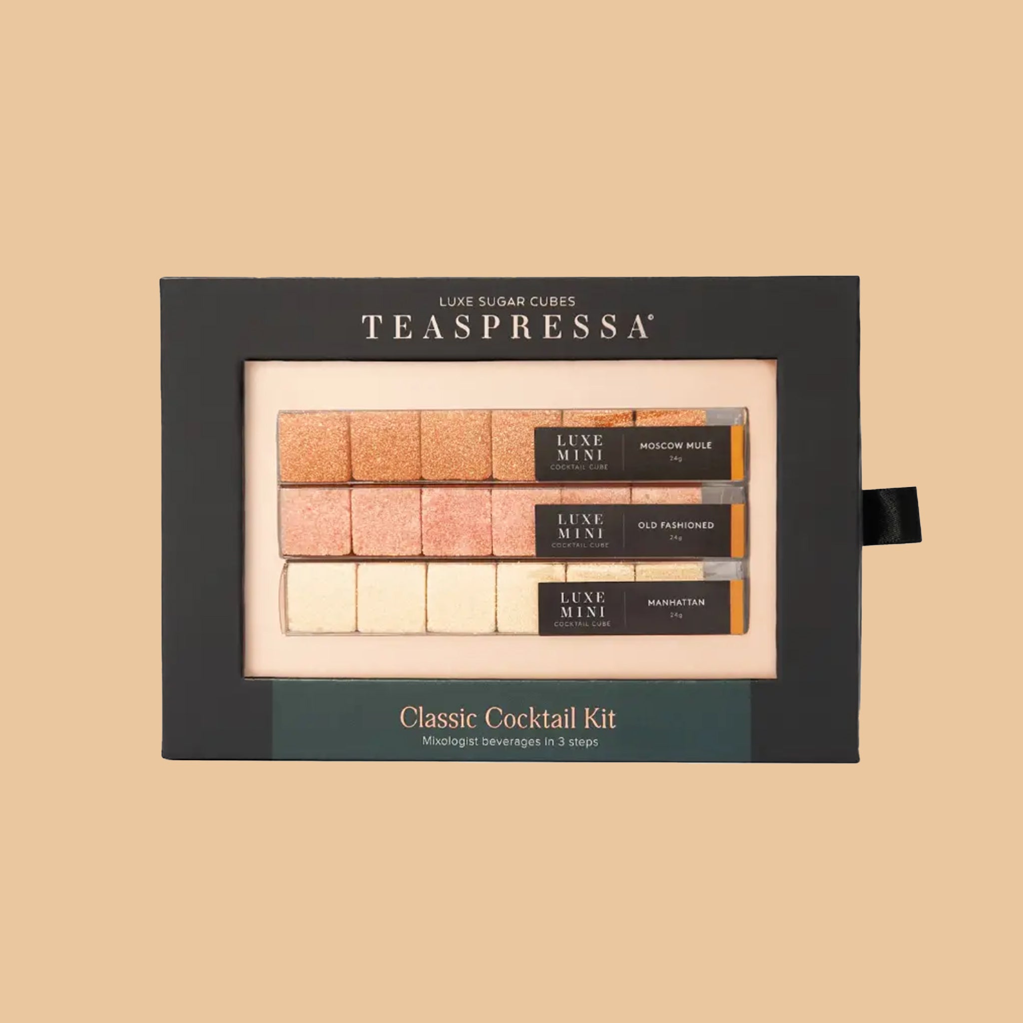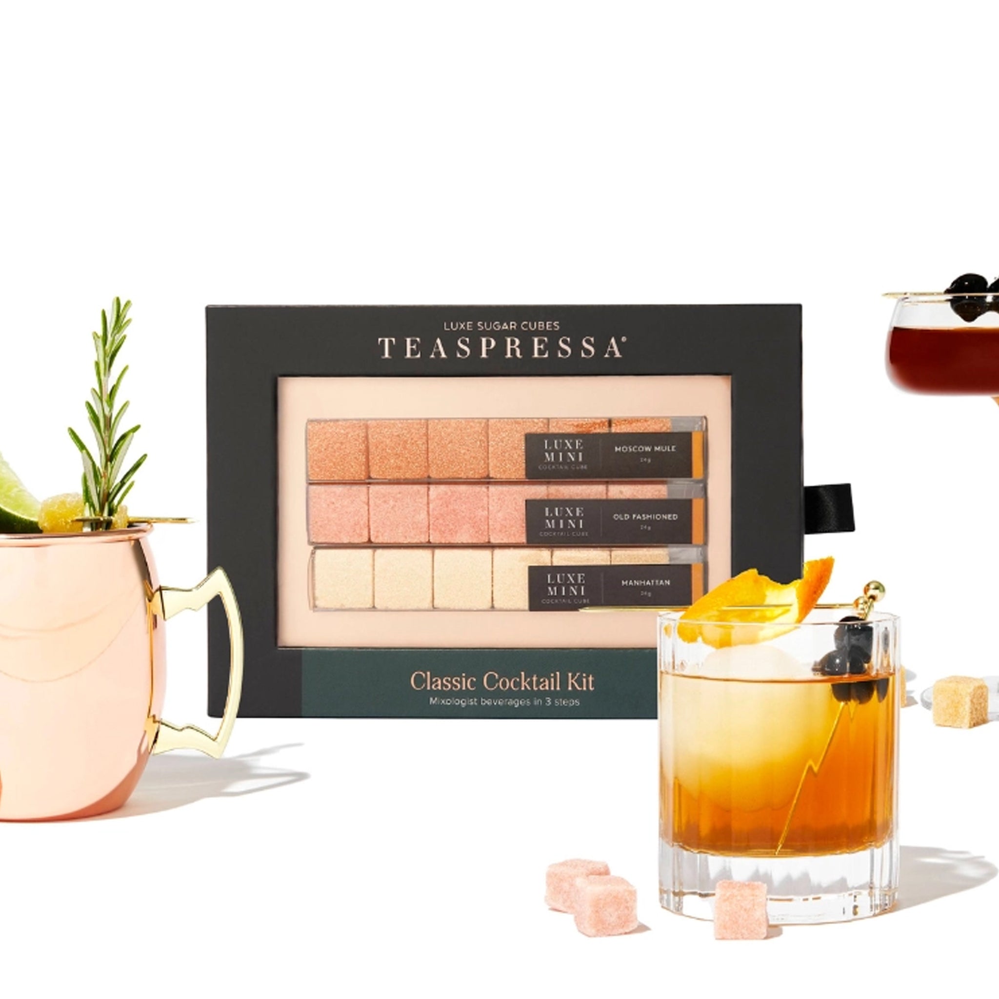 Introducing the Classic Cocktail Kit. A bourbon or whiskey lovers new bar bff. The perfect balance of a custom cocktail without the commitment. Teaspressa's best-selling Luxe Mixology Cubes are designed specifically to pair with liquor to create a simple and balanced cocktail with ease with 16 calories or less.
