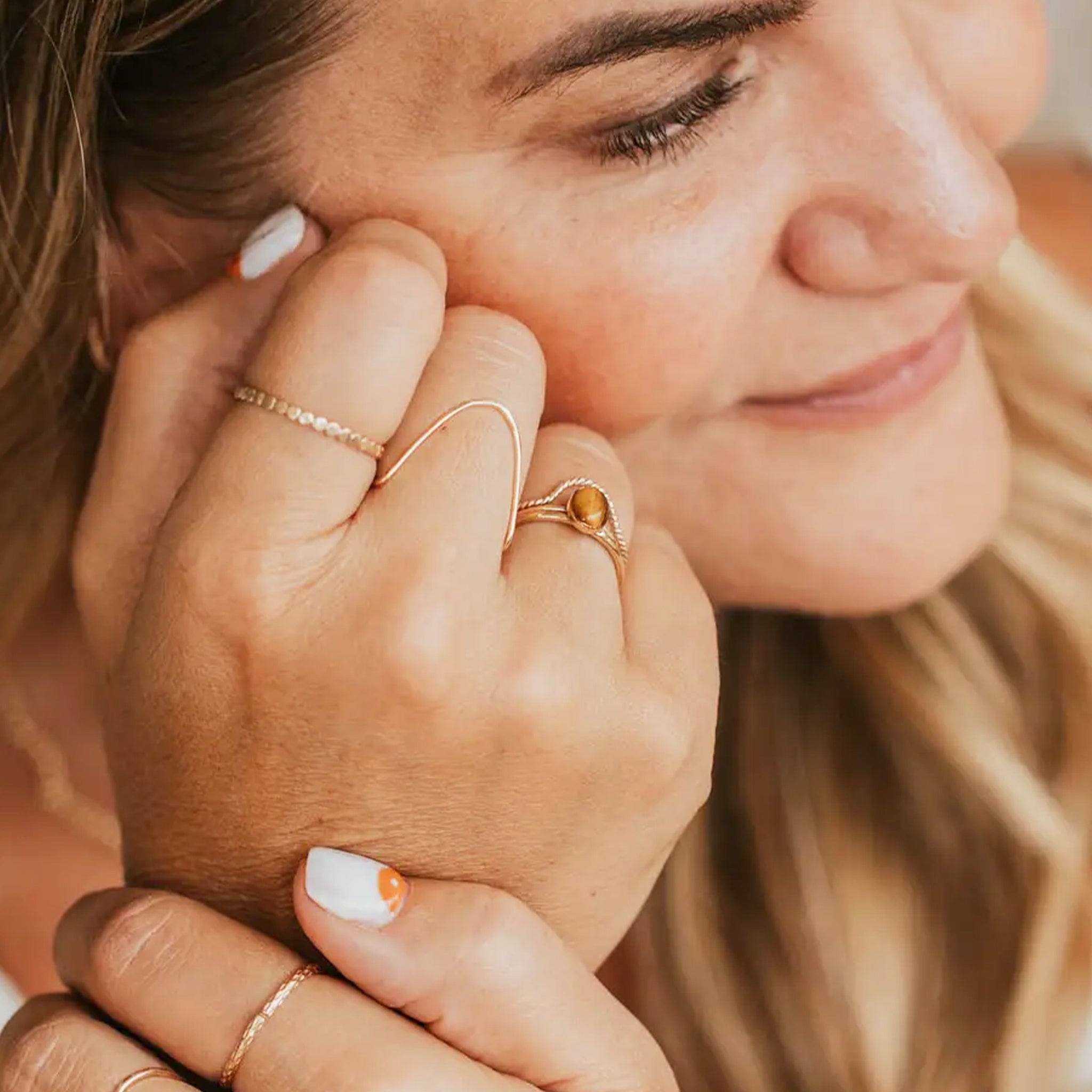 Wear this hammered ring individually for a simple adornment, or stack with other rings for a stronger statement.