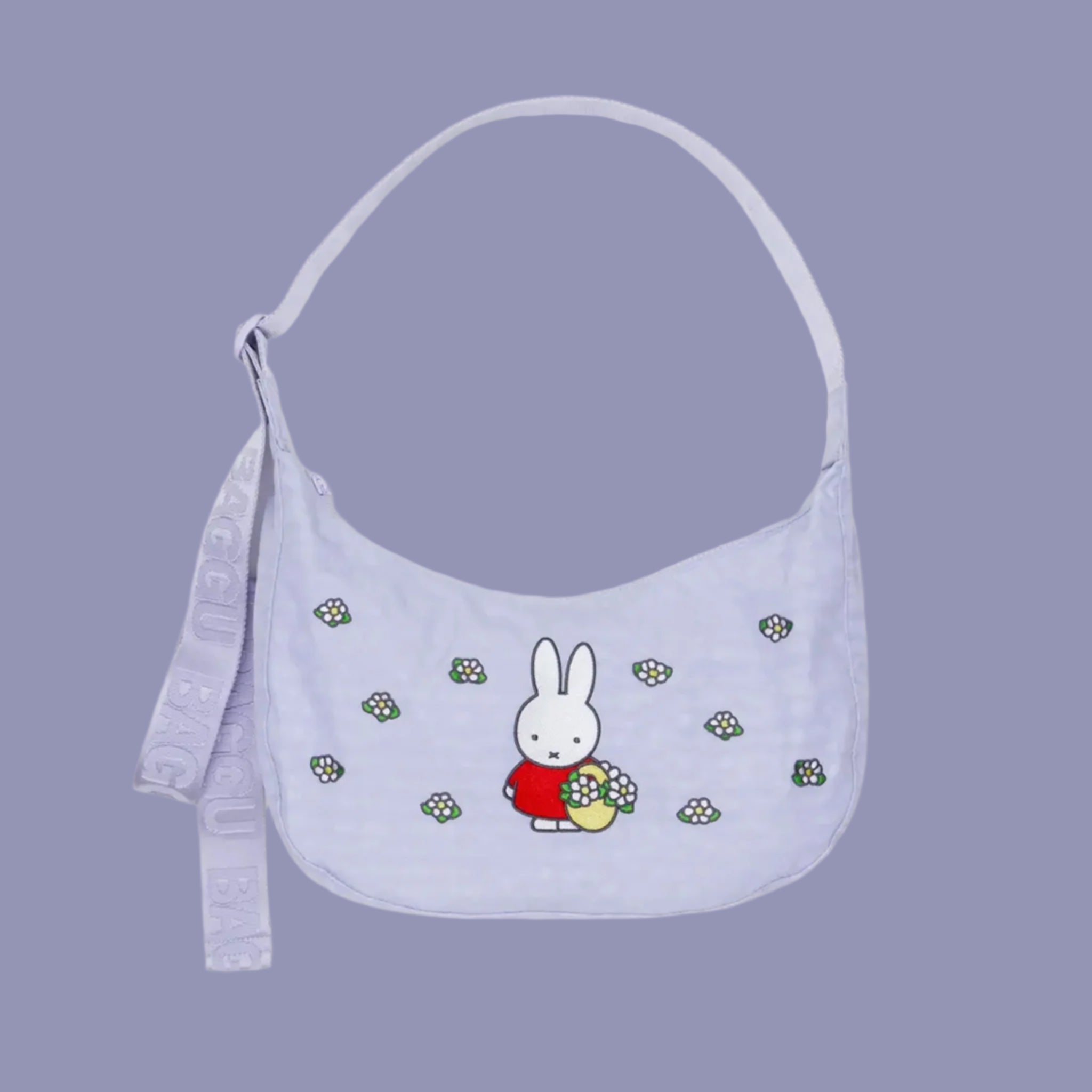 Practical doesn’t have to be boring. Baggu's Medium Nylon Crescent Bag is effortlessly casual and large enough to carry more than just the essentials. Wear it slung over your shoulder or crossbody for a hands-free experience. Complete with two interior pockets that make it easy to stay organized. And now in the adorable Miffy embroidered print.