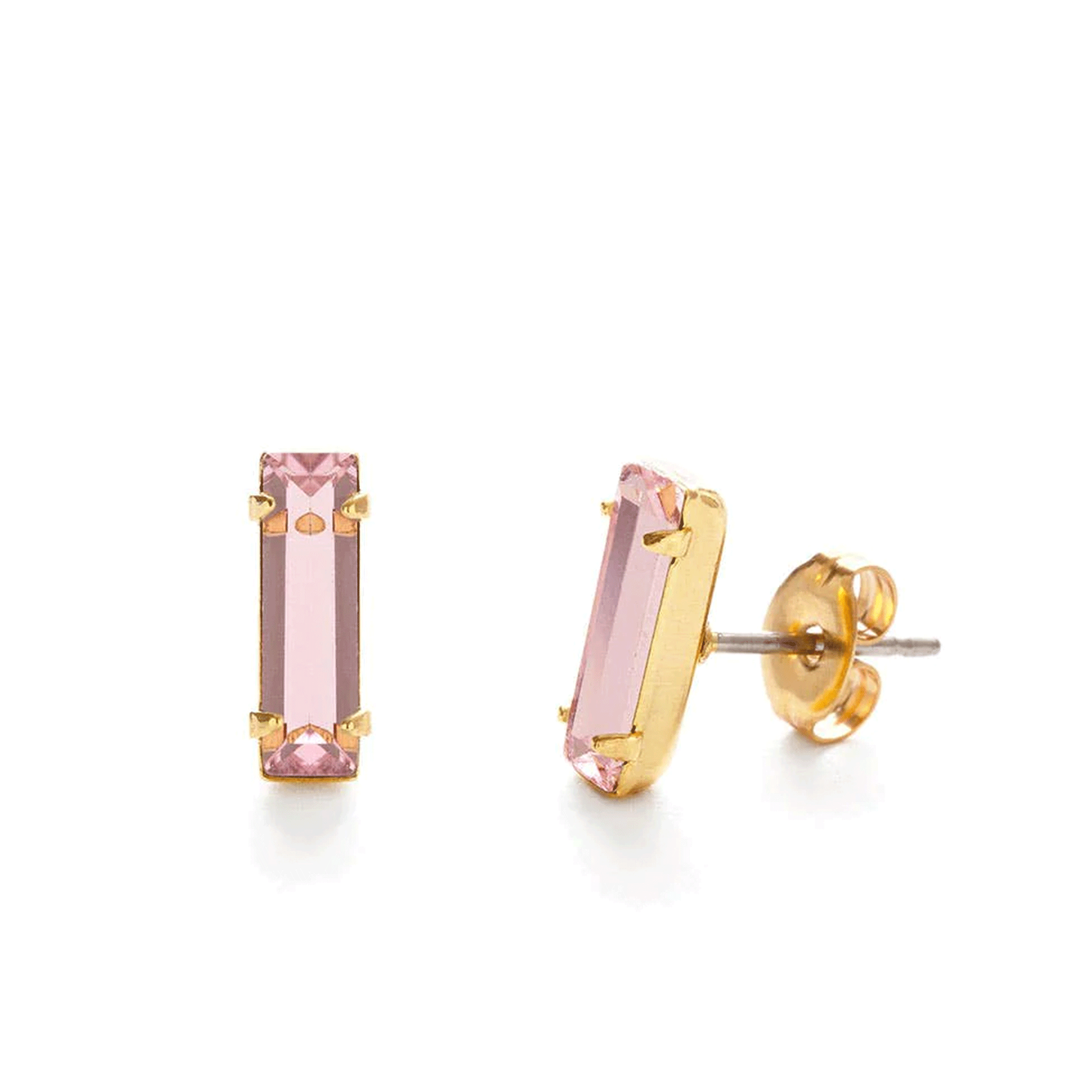 Add a touch of whimsy to any outfit with the Crystal Baguette Stud Earrings in pink. These adorable earrings feature a unique baguette shape and add a pop of color to your look. Perfect for any occasion, these earrings are sure to add a subtle touch of personality to any look.