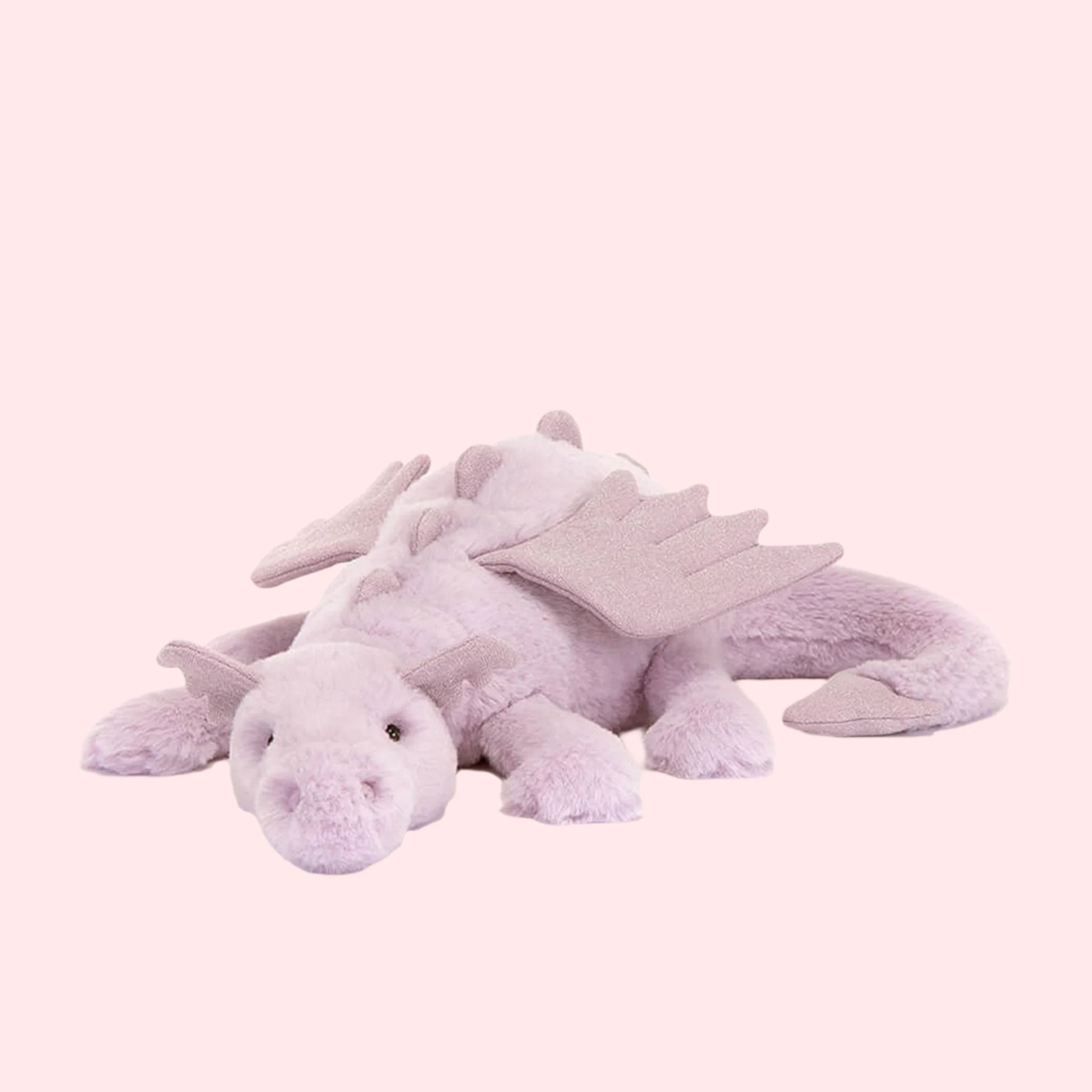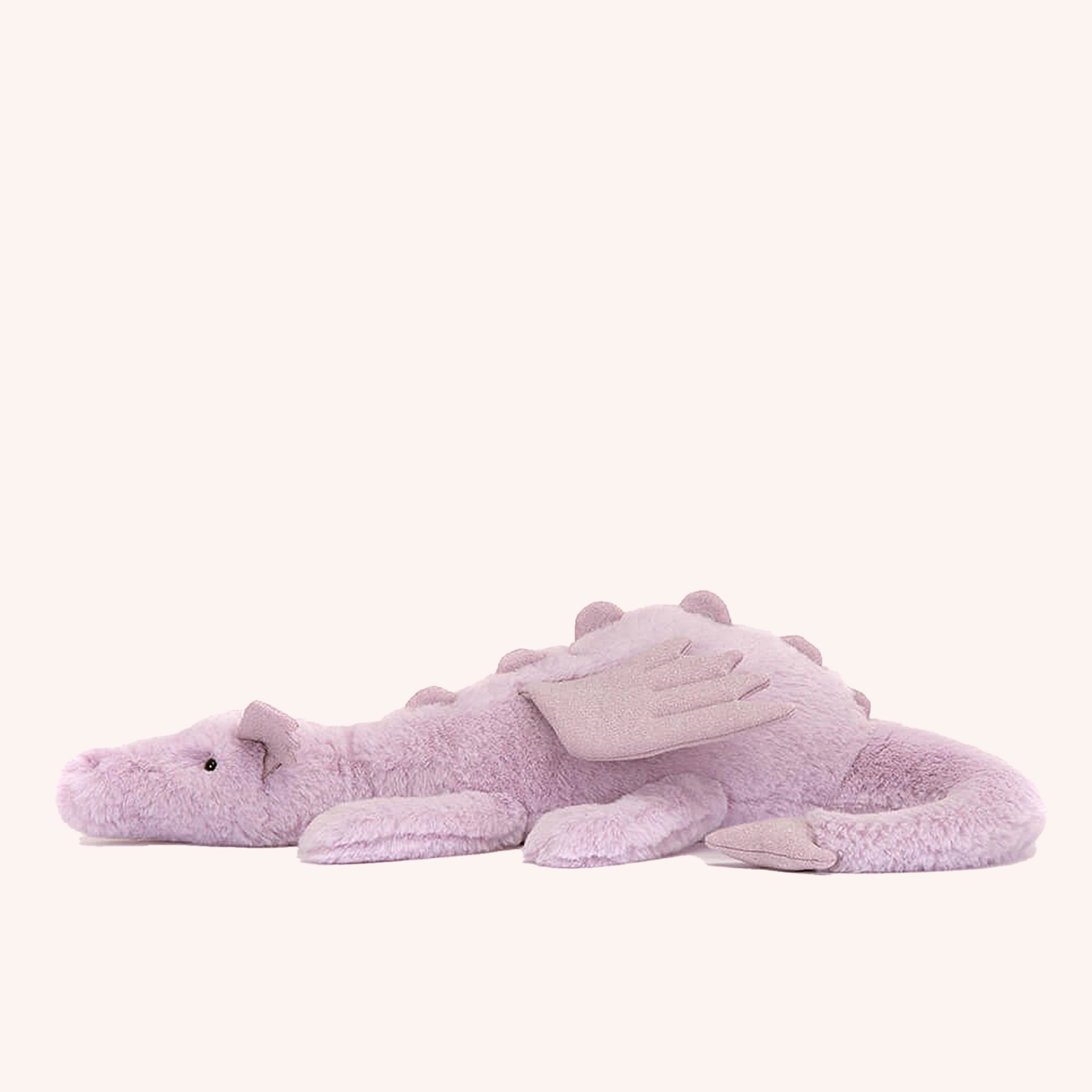 See that flash of lilac, high in the sky? It's Jellycat's Lavender Dragon! With sparkly ears, wings, soft spines, and cloudy-soft fur in bold berry purple, this magical friend is the perfect addition to your little one's collection.
