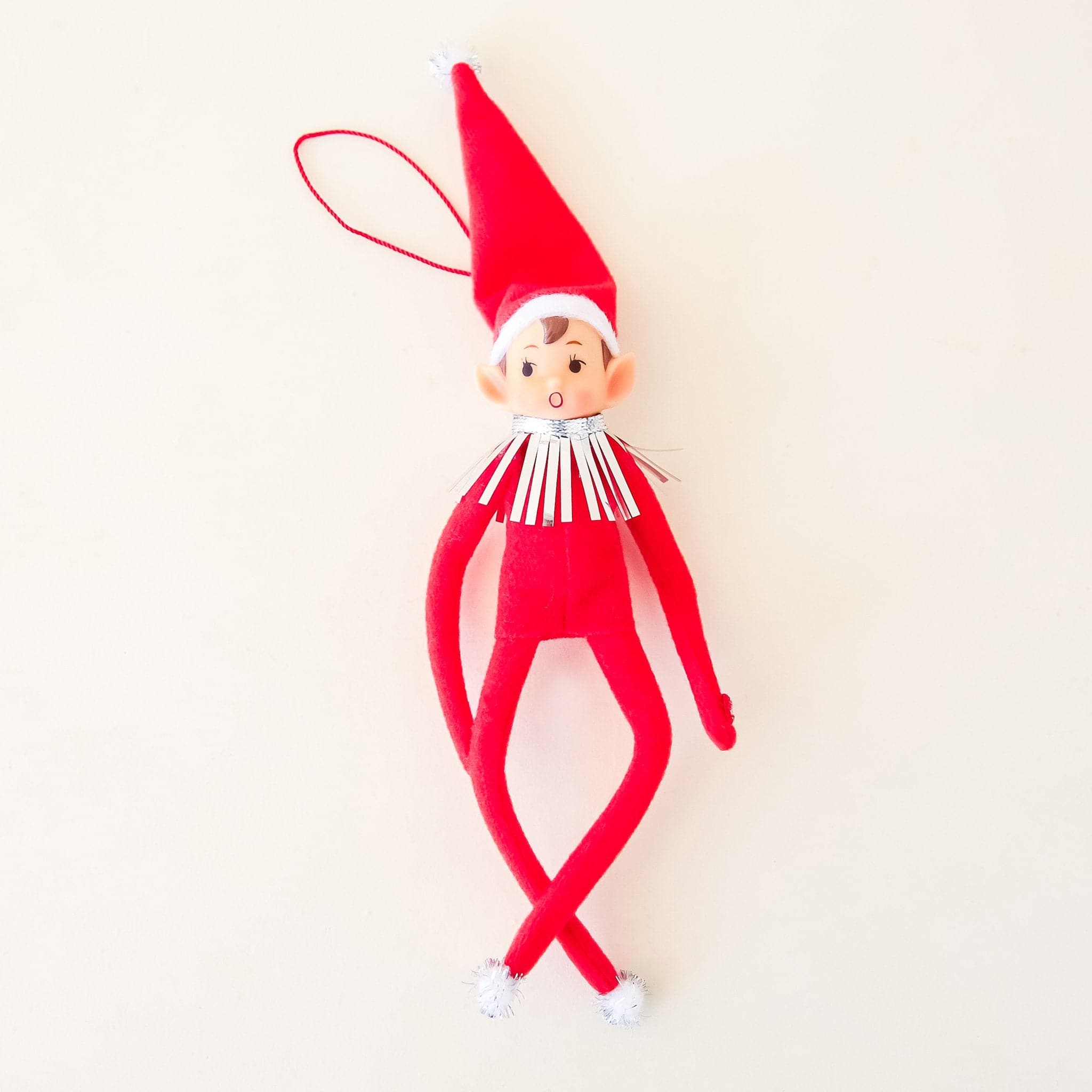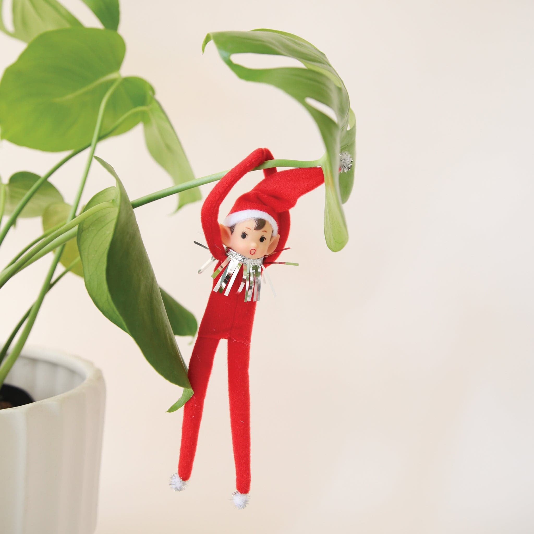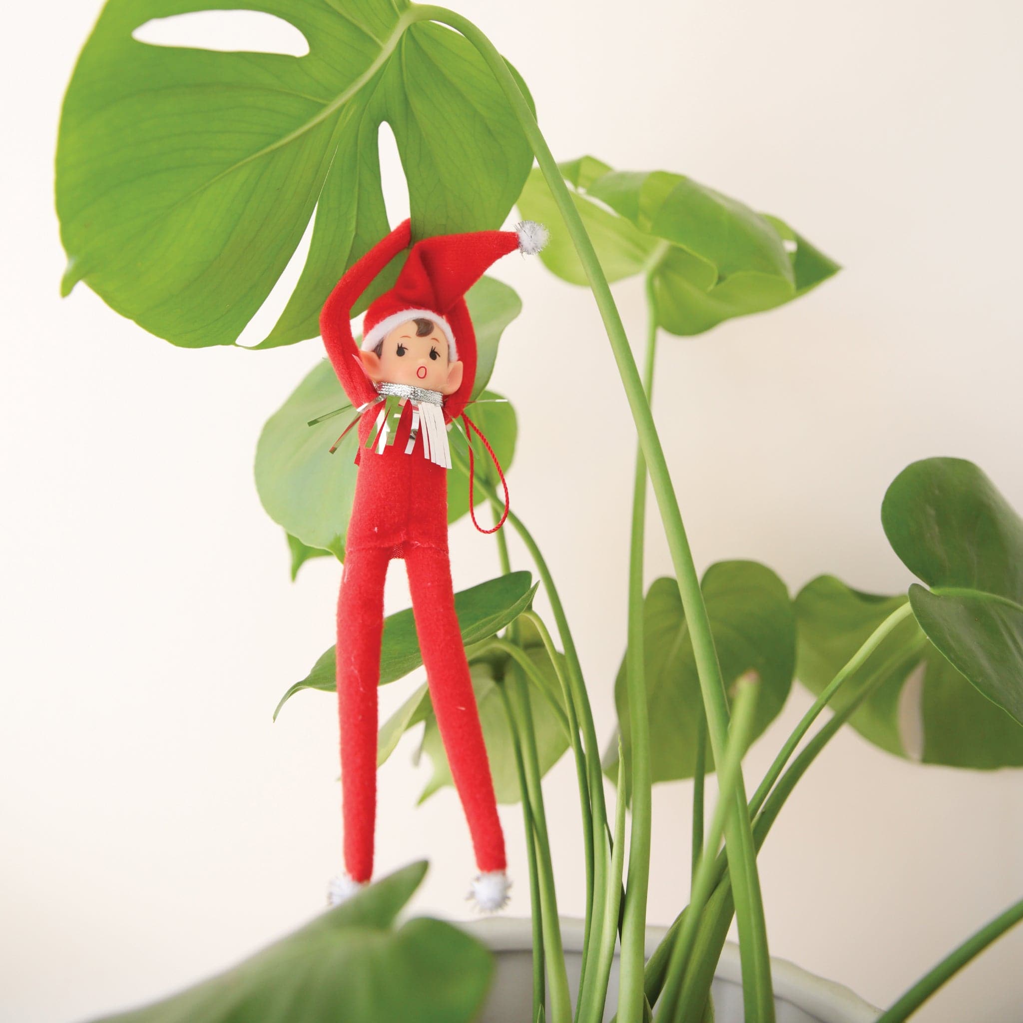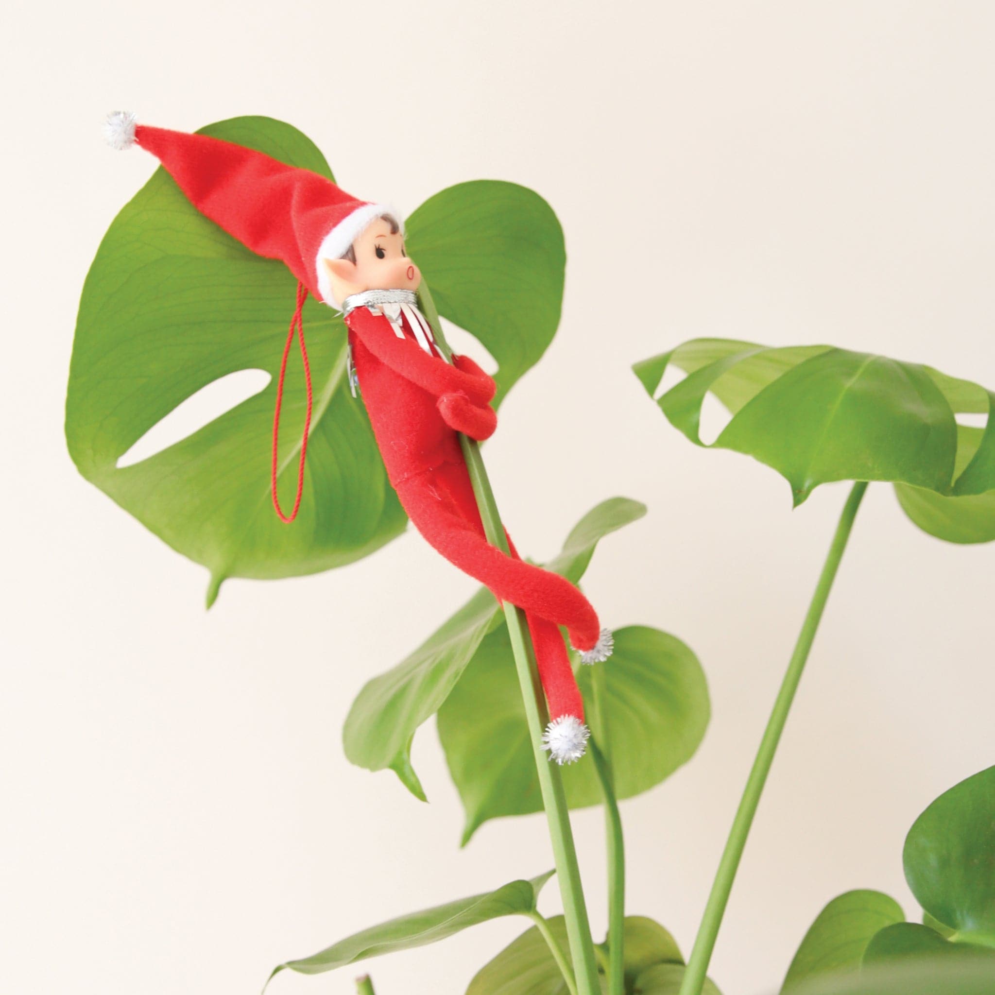 Deck the halls with our fun and festive Elf Ornament in the shade Red! Available in four vibrant colors, these bendy elves can wrap around most surfaces or hang on a tree like an ornament!