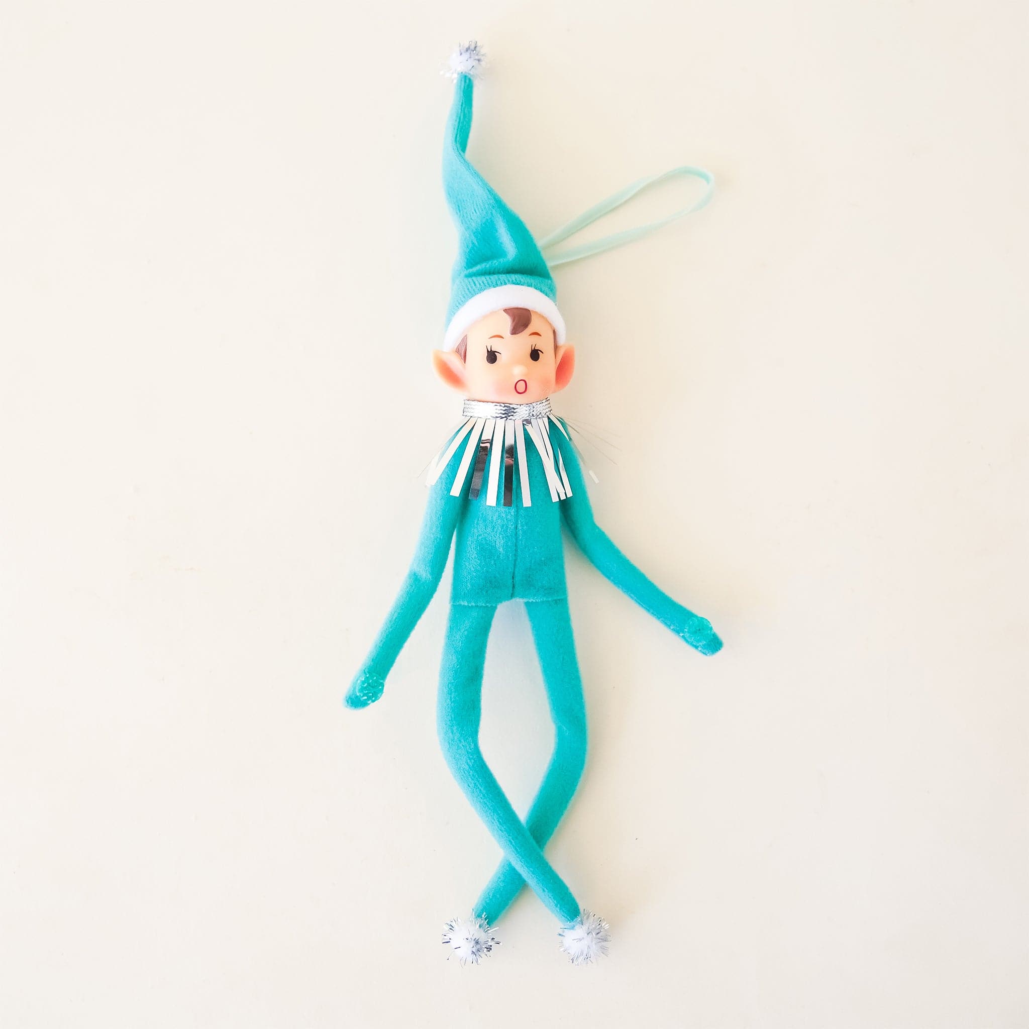 Deck the halls with our fun and festive Elf Ornament in the shade Teal! Available in four vibrant colors, these bendy elves can wrap around most surfaces or hang on a tree like an ornament!